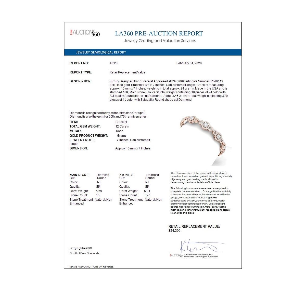 REF-735H2R - SKU: 40113 ---- 12 ctw Certified SI/I Diamond Halo Bracelet 18K Rose Gold