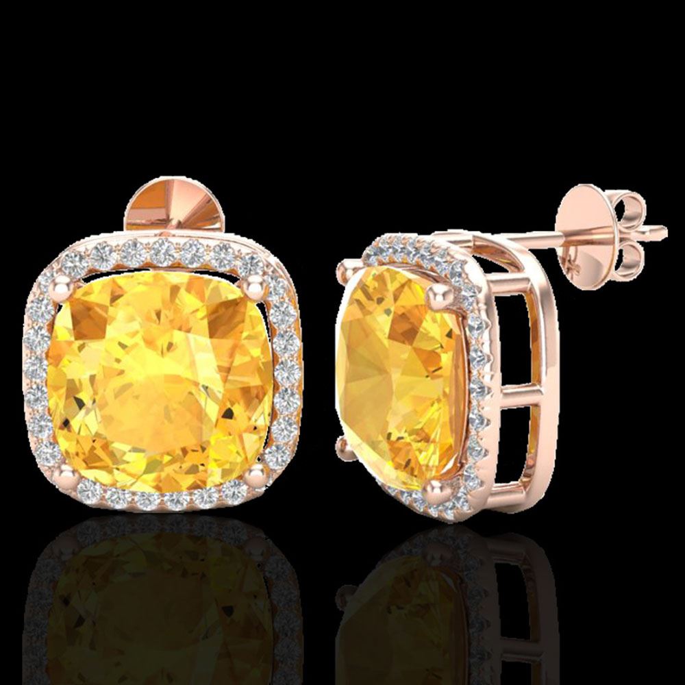 REF-75W5H - SKU: 23059 ---- 12 ctw Citrine & Micro Pave Halo VS/SI Diamond Earrings 14k Rose Gold