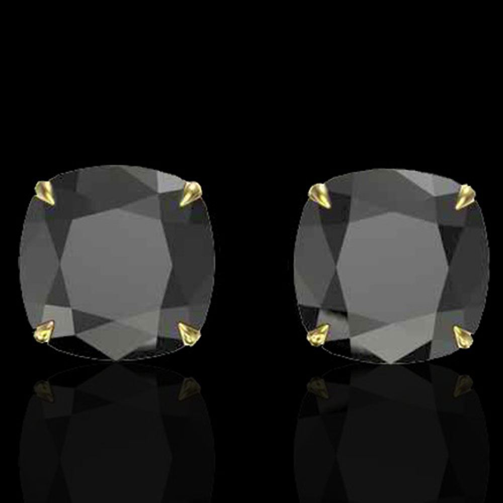 REF-290A9N - SKU: 21776 ---- 12 ctw Cushion Black Diamond Designer Earrings 18k Yellow Gold