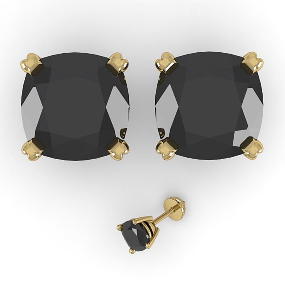 REF-267K2Y - SKU: 38396 ---- 12 ctw Cushion Black Diamond Stud Designer Earrings 14k Yellow Gold