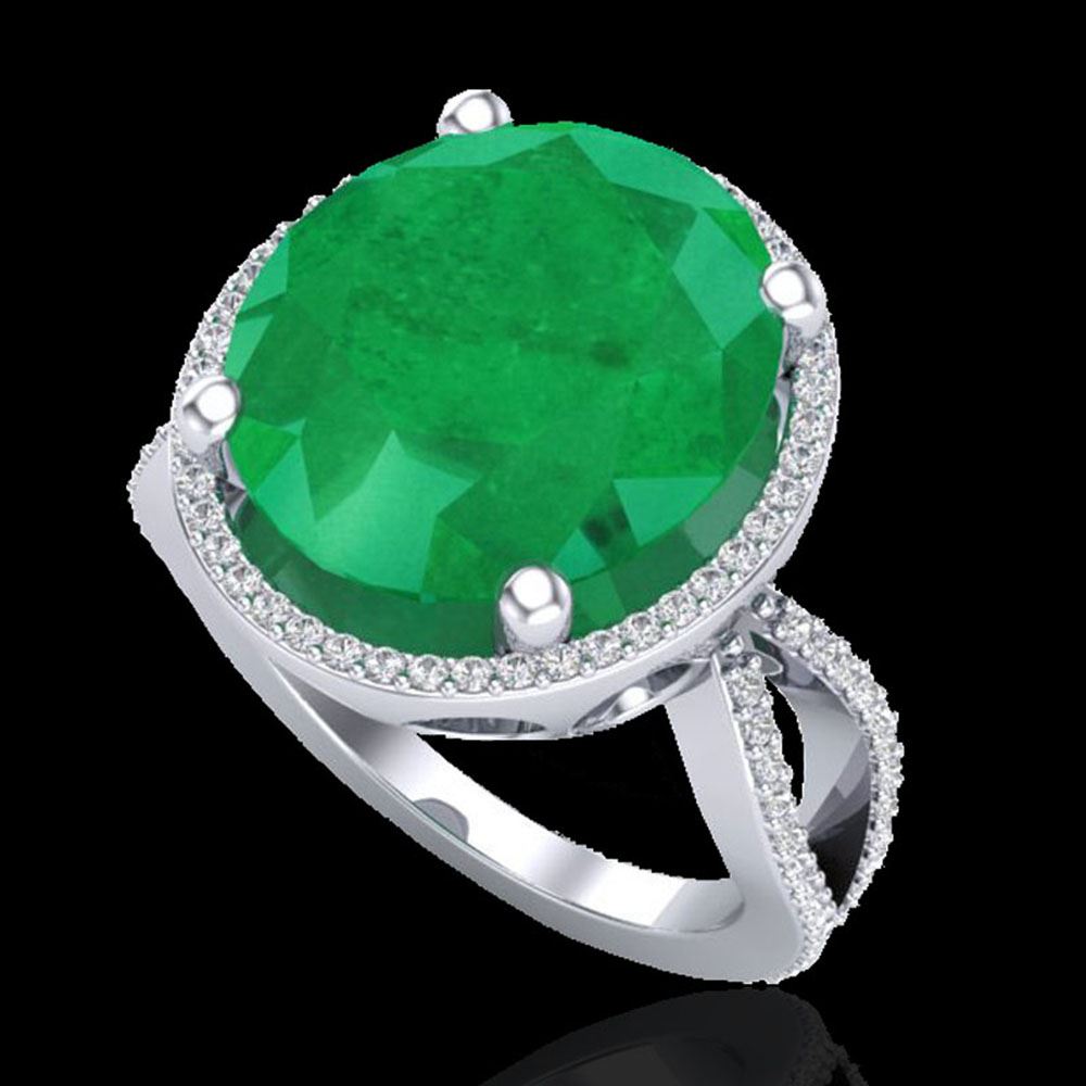 REF-143F6M - SKU: 20960 ---- 12 ctw Emerald & Micro Pave VS/SI Diamond Ring 18k White Gold