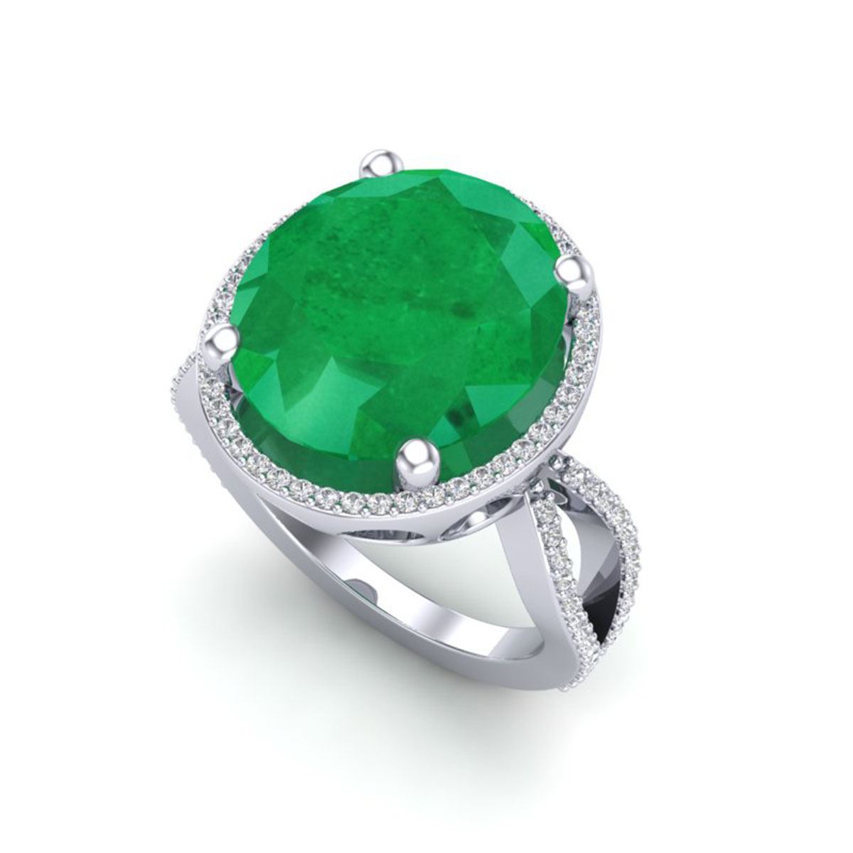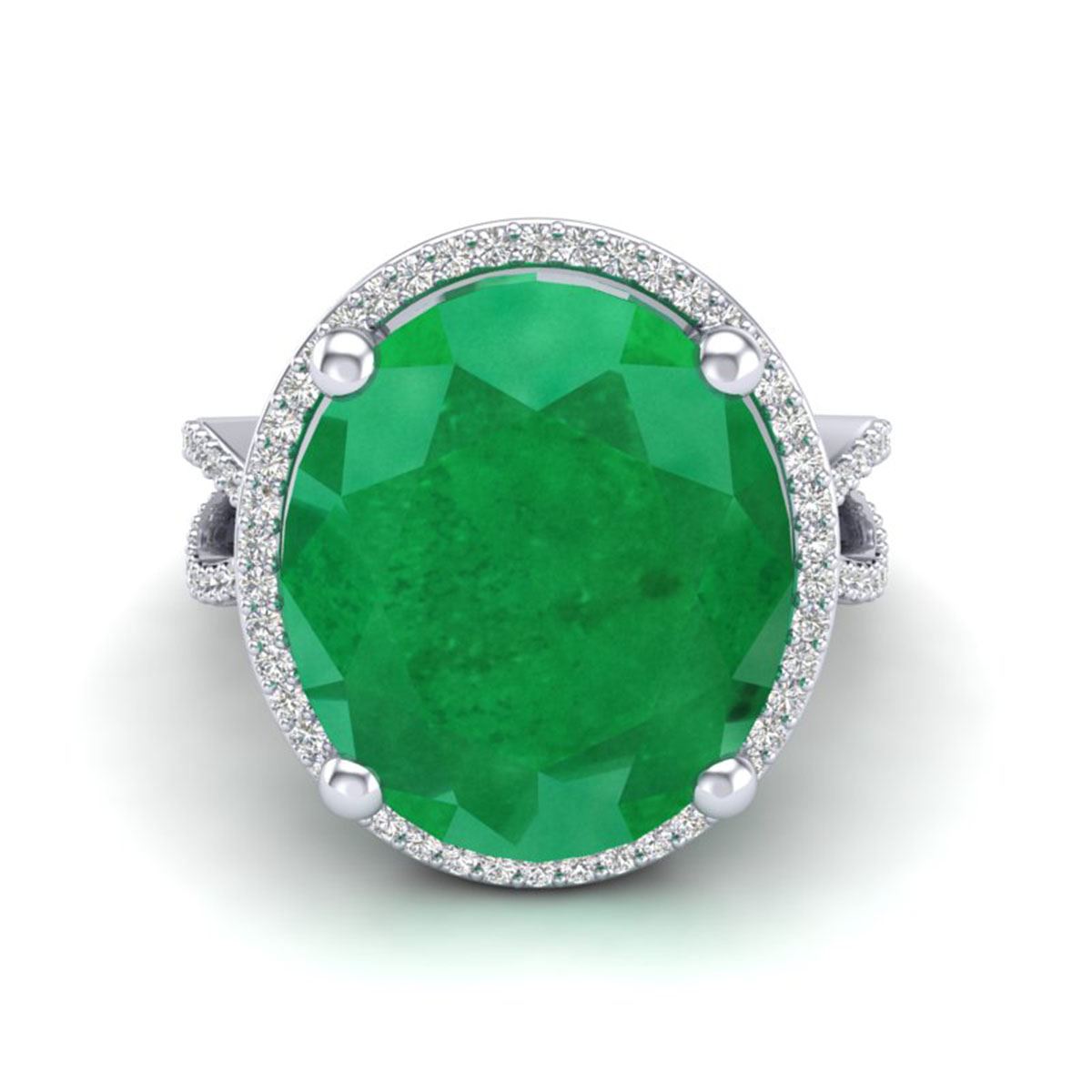REF-143R6K - SKU:20960 ---- 12 ctw Emerald & VS/SI Diamond Ring 18K White Gold