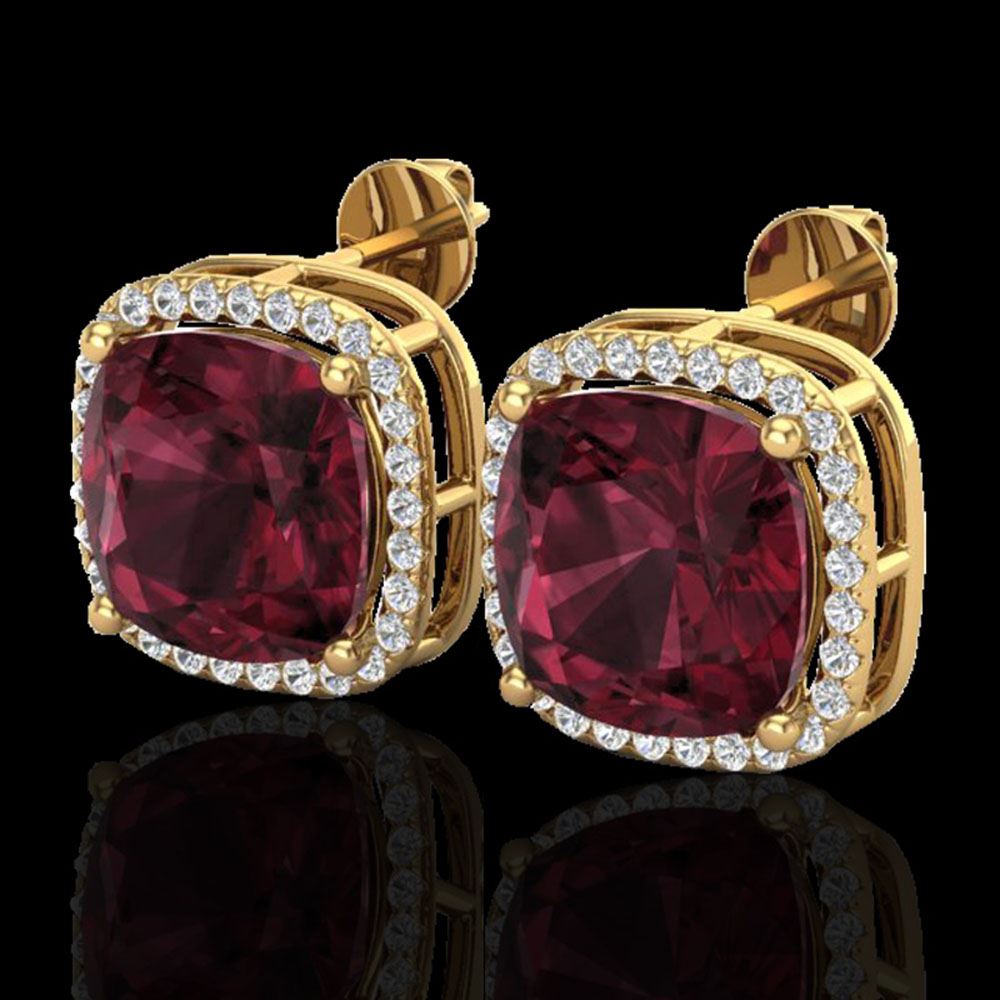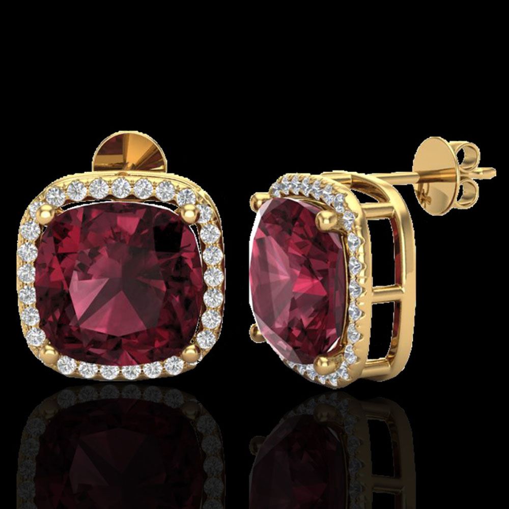 REF-88H2R - SKU: 23065 ---- 12 ctw Garnet & Micro Pave Halo VS/SI Diamond Earrings 18k Yellow Gold