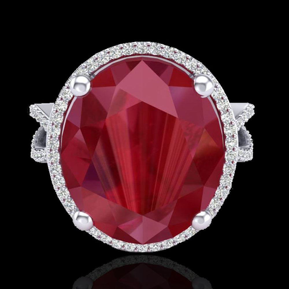 REF-143X6A - SKU: 20965 ---- 12 ctw Ruby & Micro Pave VS/SI Diamond Certified Ring 18k White Gold