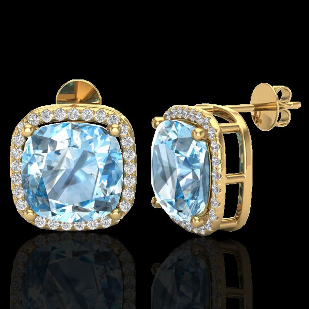 REF-83M3G - SKU: 23072 ---- 12 ctw Sky Blue Topaz & Micro VS/SI Diamond Earrings 18k Yellow Gold