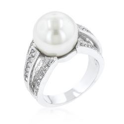 The 12 mm Shell Pearl Bridal Ring is truly a unique piece. Fashion at its finest this piece is fashioned with rhodium plating and a beautiful 12 mm pearl center stone. Our genuine rhodium finish is achieved using an electroplating process that coats the item with heavy layers of rhodium a close cousin to platinum which gives our jewelry a platinum luster.Base Metal: Lead Free Alloy (Brass)Style: , Setting Type: Prongs| PaveMaterials: , Stone Cut: RoundCarat Weight: .36 (ct)Color: , Plating Color: Silvertone FinishChain Clasp: 7.00Ring Band Width: 4 (mm)Bracelet Size: 22 mm L x 12 mm W x 13 mm HStone Size: 1 (mm)Type: Ring