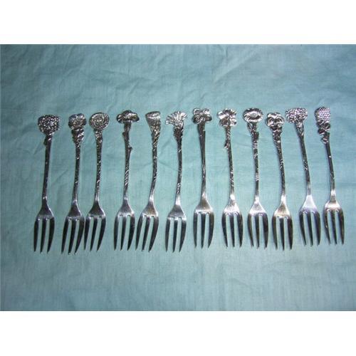 <tr><td>Title:12 silver pastry forks with flower design</td></tr>