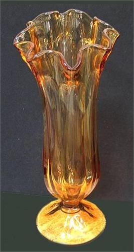 12" tall ruffled edge vase, topaz color. No chips or cracks