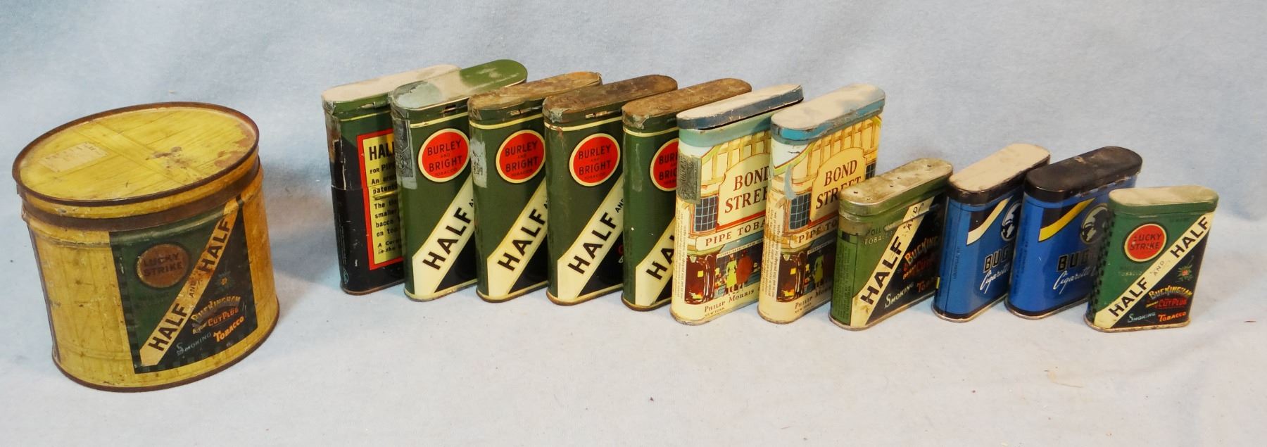(12) tobacco tins, Half & Half, Bond Street and Bugler, assorted sizes