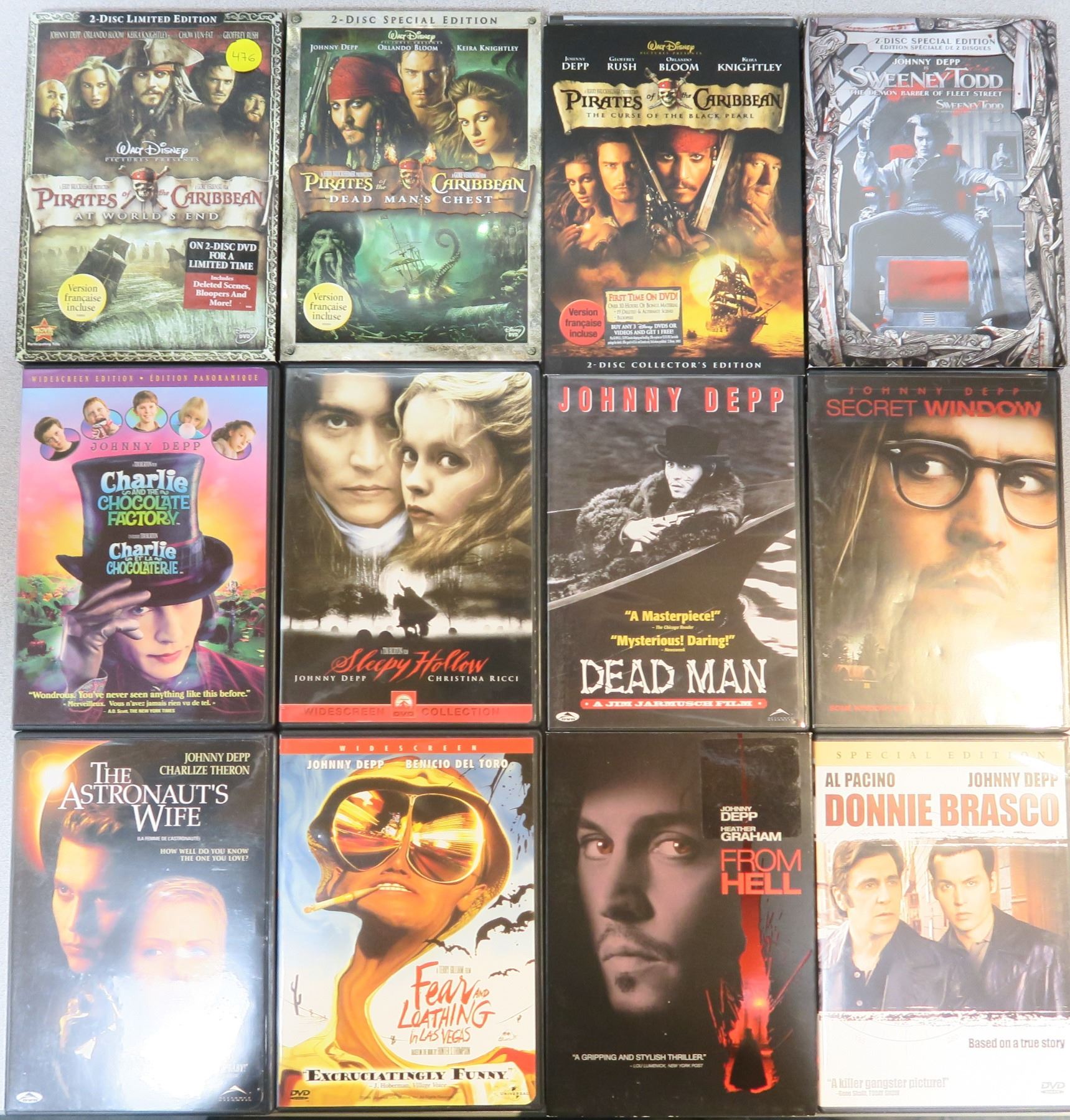 Pirates of the Caribbean At Worlds End, Dead Man's Chest, Curse of the Black Pearl; Sweeney Todd; Charlie and the Chocolate Factory; Sleepy Hollow; Dead Man; Secret Window; The Astronaut's Wife; Fear and Loathing in Las Vegas; From Hell; Donnie Brasco