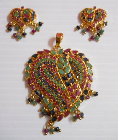 120.15 CTW GOLD PLATED EMERALD/SAPPIRE/RUBY PENDANT AND **|**|** 120.15 CTW GOLD PLATED EMERALD/SAPPIRE/RUBY PENDANT AND EARRING SET STERLING SILVER ; MSRP: $1225