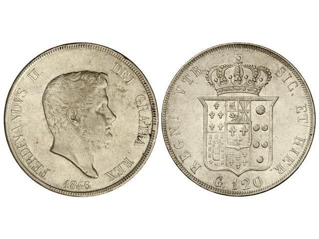 120 Grana. 1846. FERNANDO II. NÁPOLES Y SICILIA. AR. (Rayitas). C-153b. MBC-/MBC.