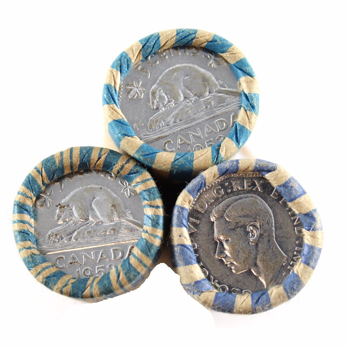 120 x 1951-1954 STEEL Canada 5cts in average circulating condition.