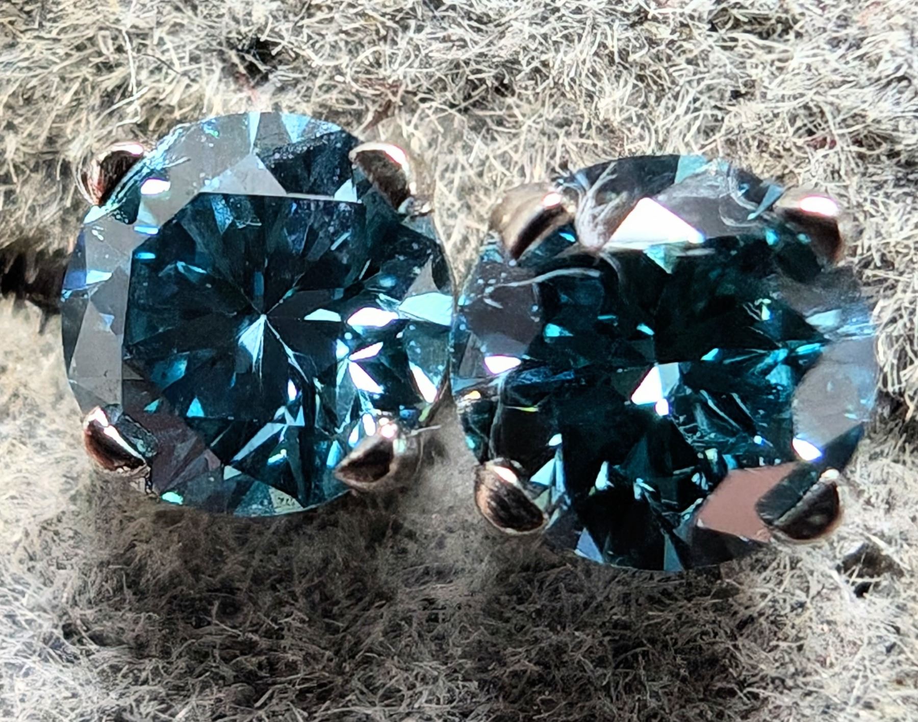 $1200, 14K LAB BLUE DIAMOND (0.51ct)EARRING, appraised/retail value $1200