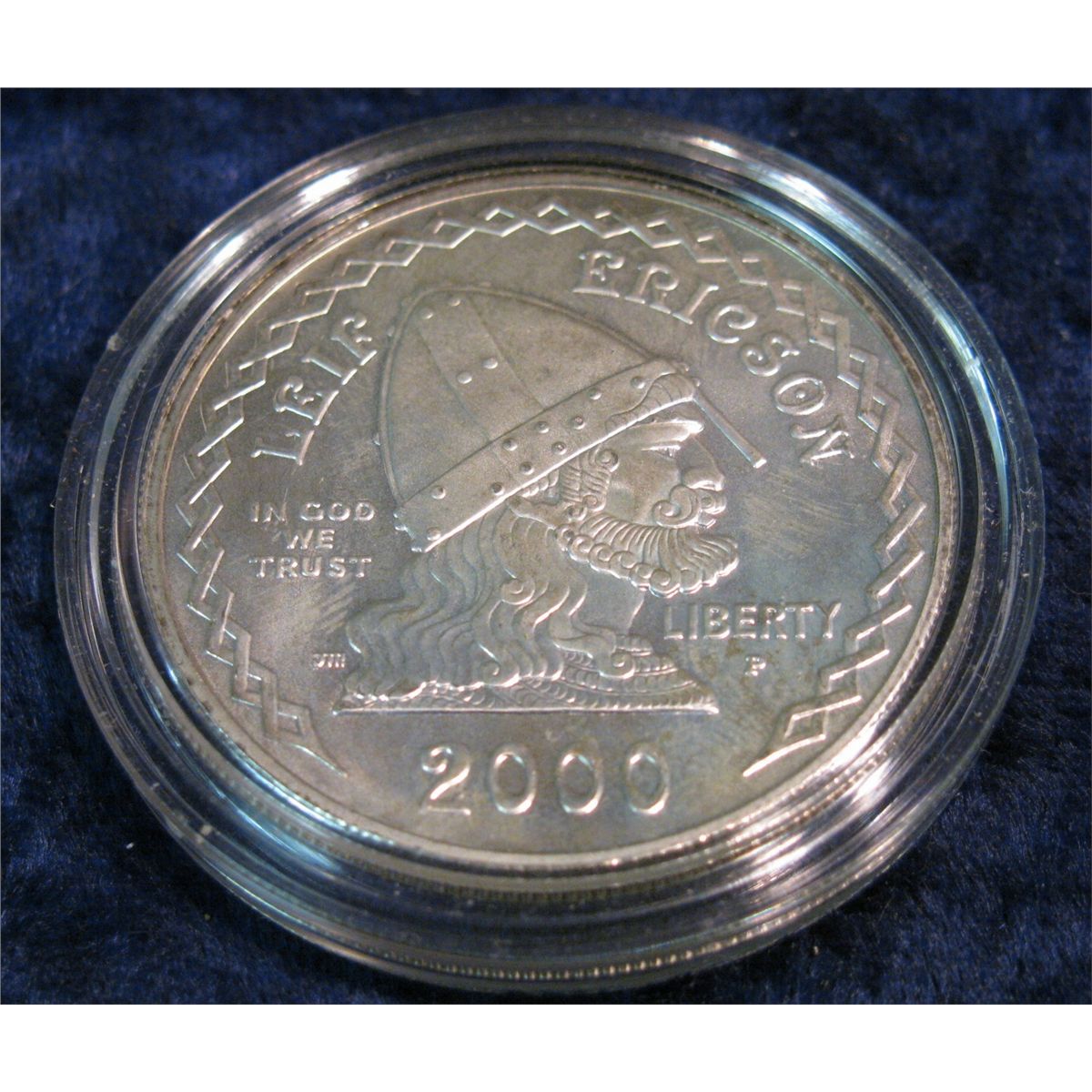 1200. 2000 P Leif Ericson Commemorative Silver Dollar. Brilliant Unc. Encapsulated.