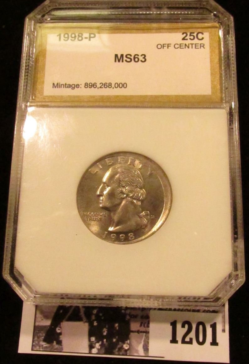 1201 . 1998-P Off-Center Washington Quarter Graded MS 63