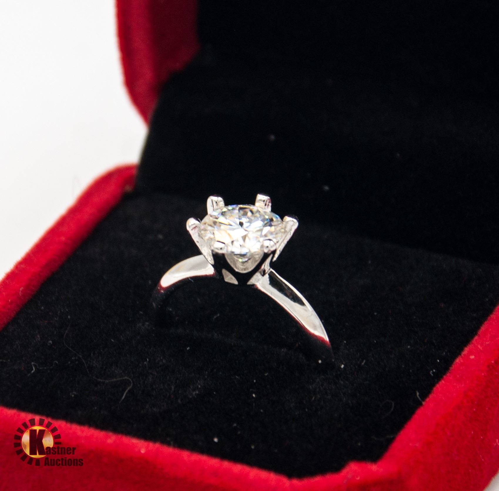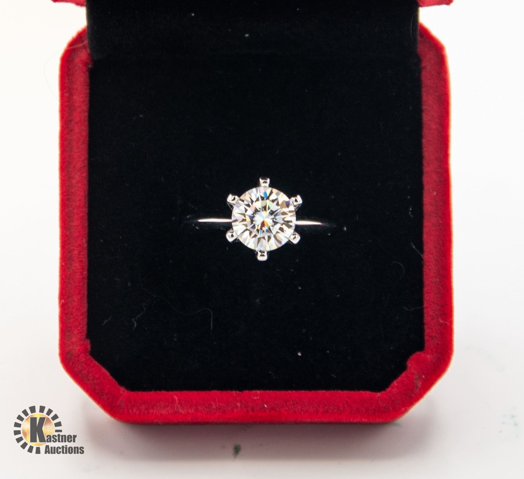 MOISSANITE STONE VVS D COLOR SET IN CENTER IN 6 CLAW HEAD IN 925 SILVER RING SIZE 7 RETAIL VALUE $825.00