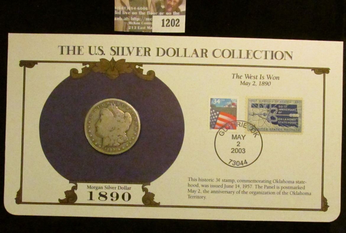 1890 New Orleans Mint Morgan Silver Dollar in a special protected cover with post marked commemorative cover and stamps.