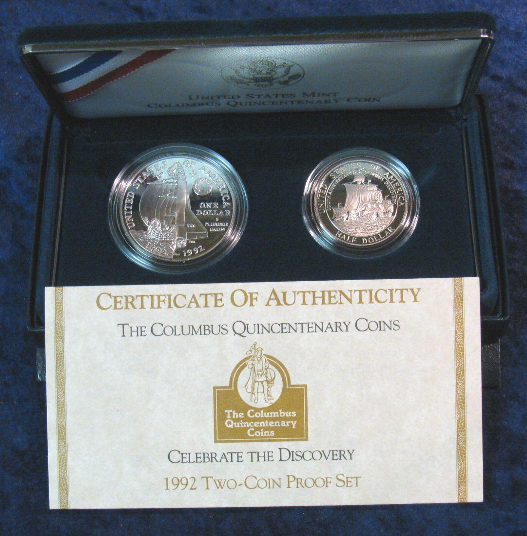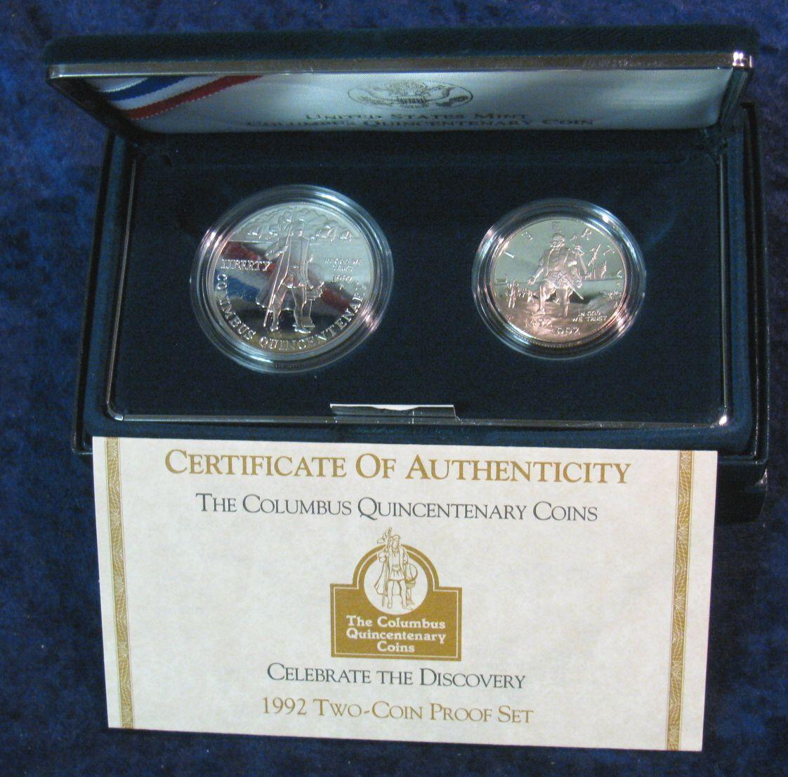 1202. 1992P & S 2-Coin Silver Columbus Quincentary Set. Proof.