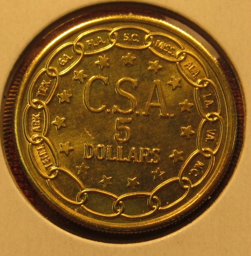 1203. 1861 Confederate States of America $5, copy, not marked, for educational purposes only