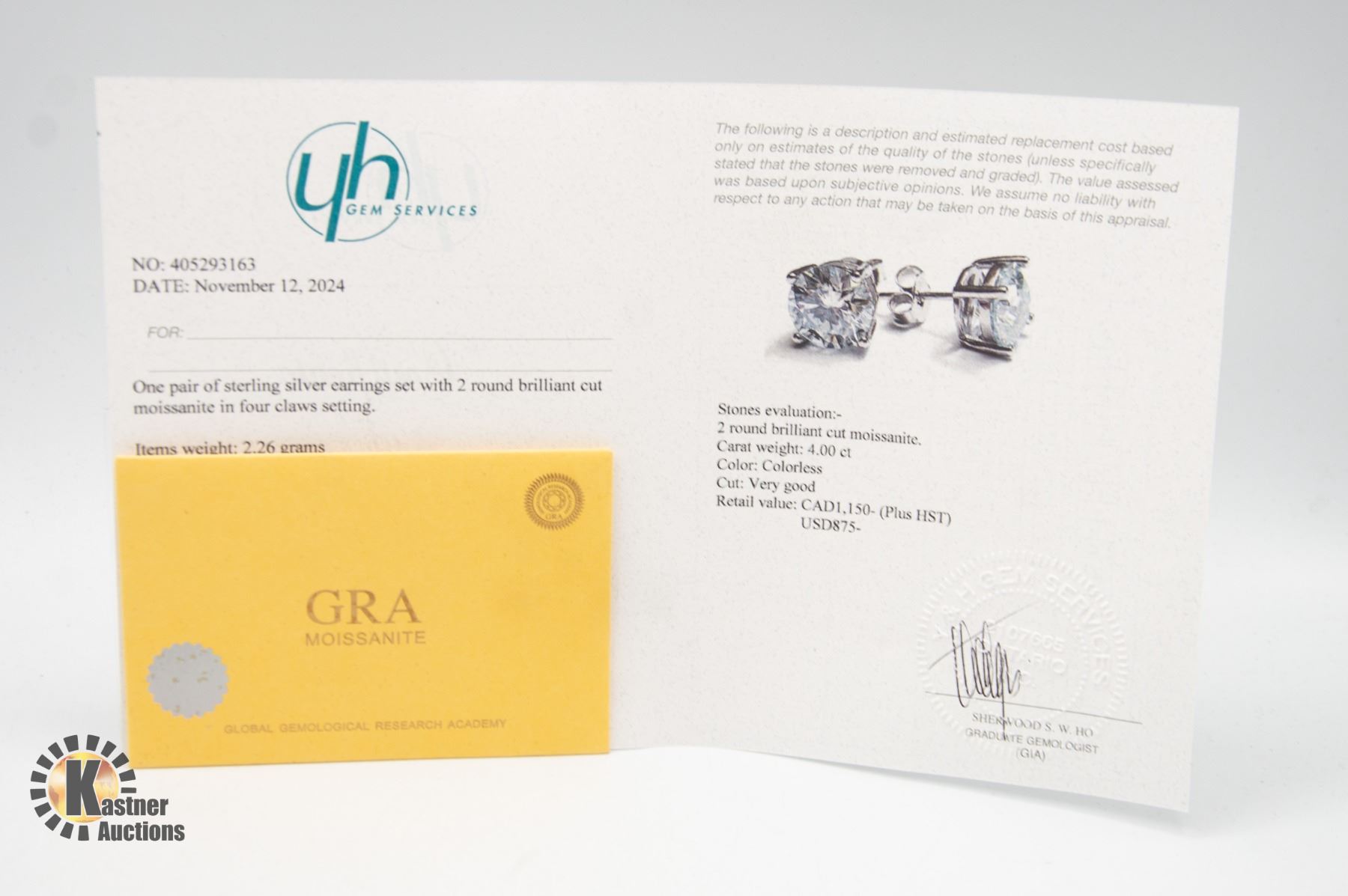 MOISSANITE STONES VVS D COLOR SET IN 4 CLAW HEAD SET IN 925 SILVER EARRINGS RETAIL VALUE $1,150.00 **ALL ITEMS MUST BE REMOVED BY 5PM SATURDAY, DECEMBER 14th 2024. ALL REMAINING ITEMS WILL BE SUBJECT TO A $6.00 PER DAY STORAGE CHARGE. ANY ITEMS REMAINING AFTER MONDAY, DECEMBER 30TH 2024 WILL BE CONSIDERED FORFEITED. NO REFUNDS WILL BE ISSUED FOR FORFEITED ITEMS. TO SCHEDULE A PICK UP APPOINTMENT CLICK HERE