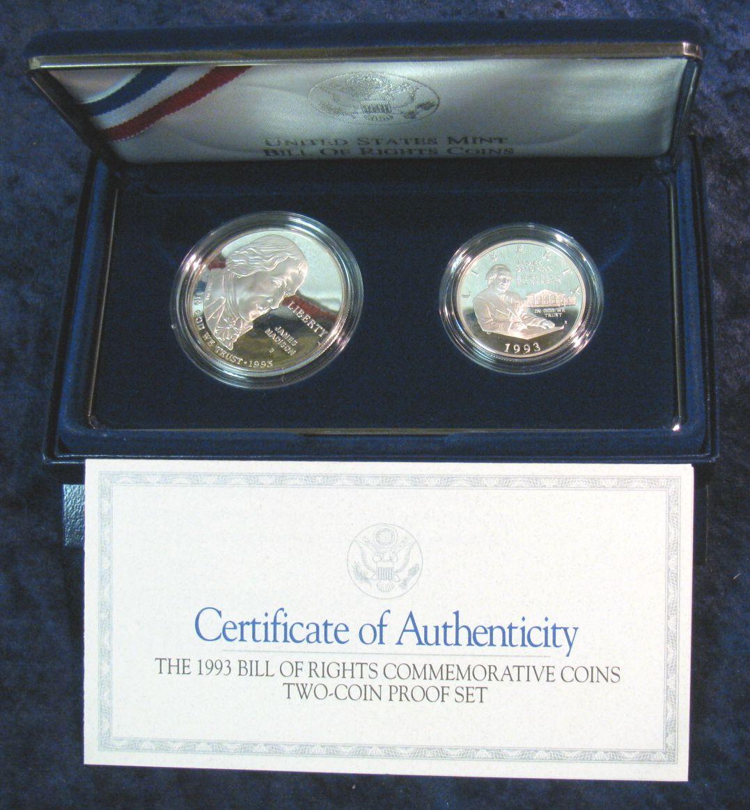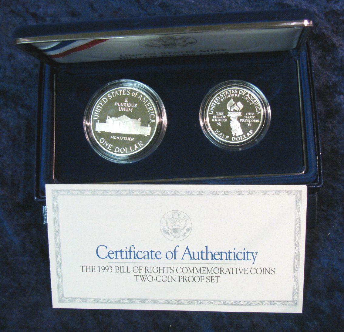 1205. 1993S Bill of Rights Silver 2-Coin Set. Proof.