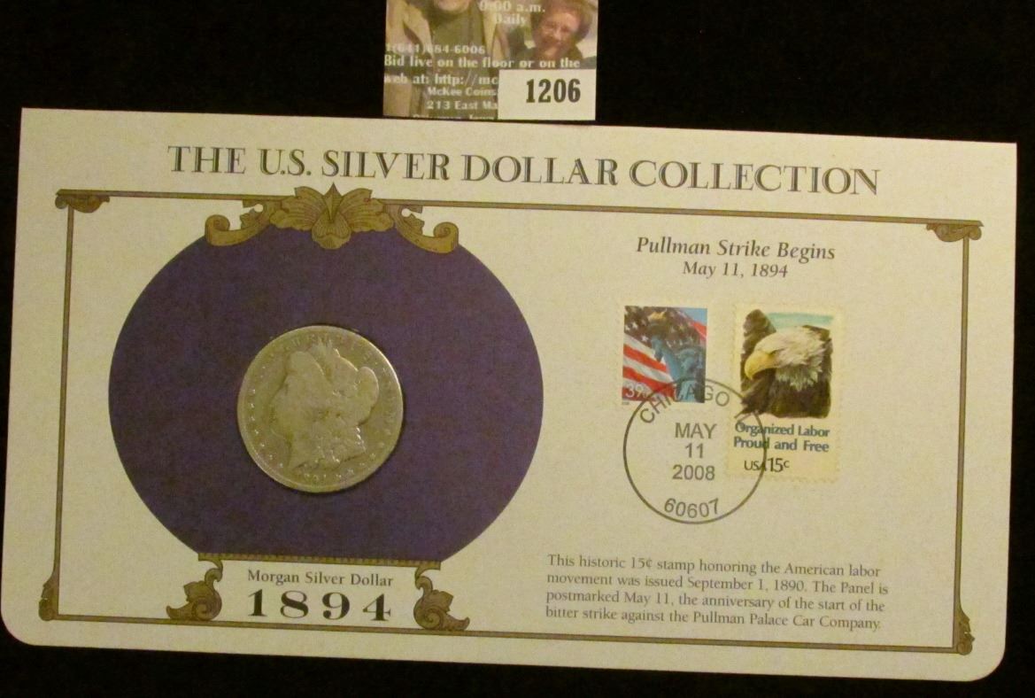 1894 New Orleans Mint Morgan Silver Dollar in a special protected cover with post marked commemorative cover and stamps.