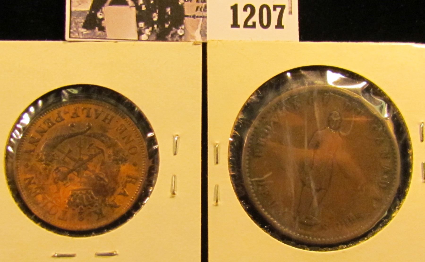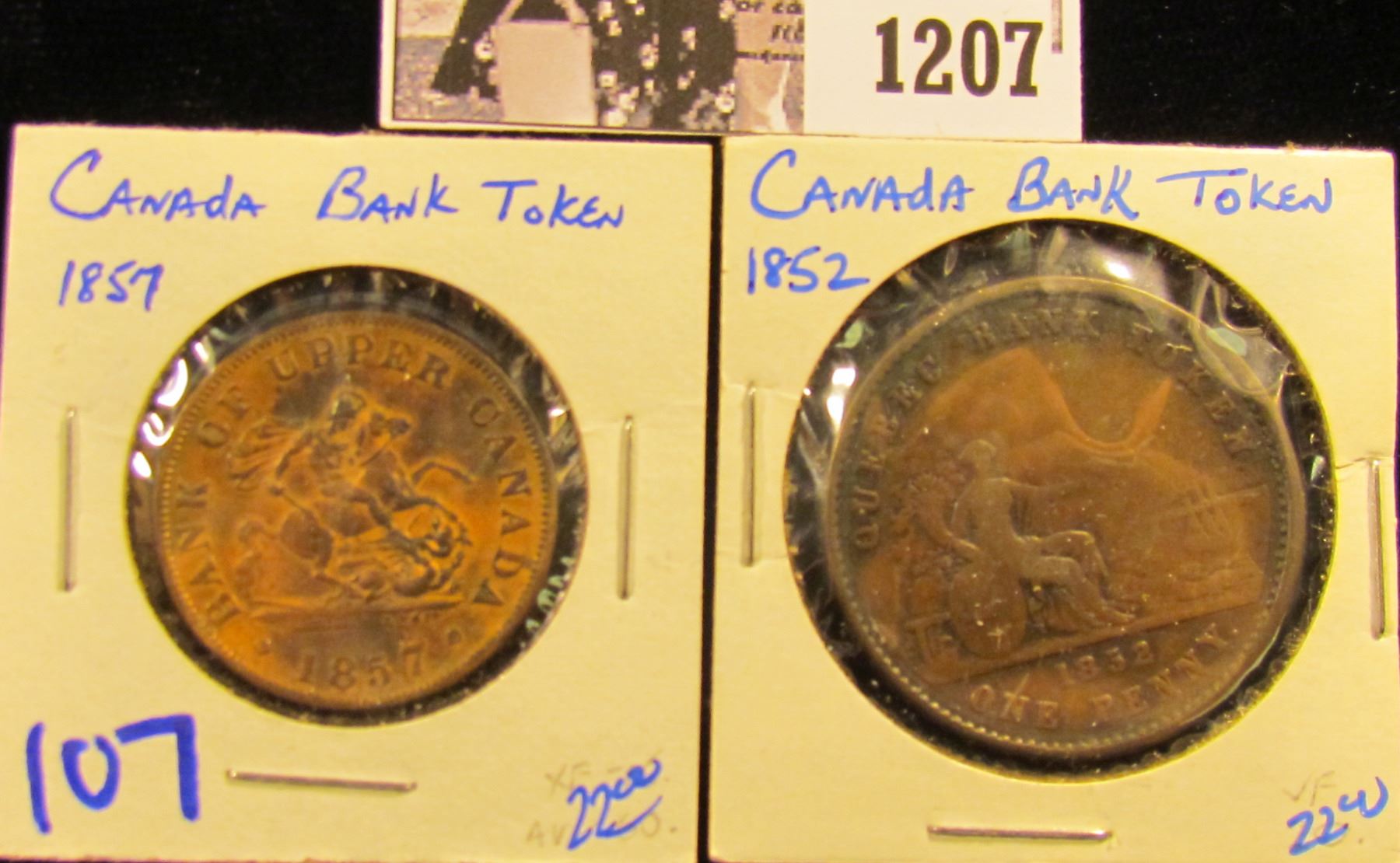 1207 . 1852 Quebec Canadian Bank Token & 1857 Upper Bank Token Half Penny