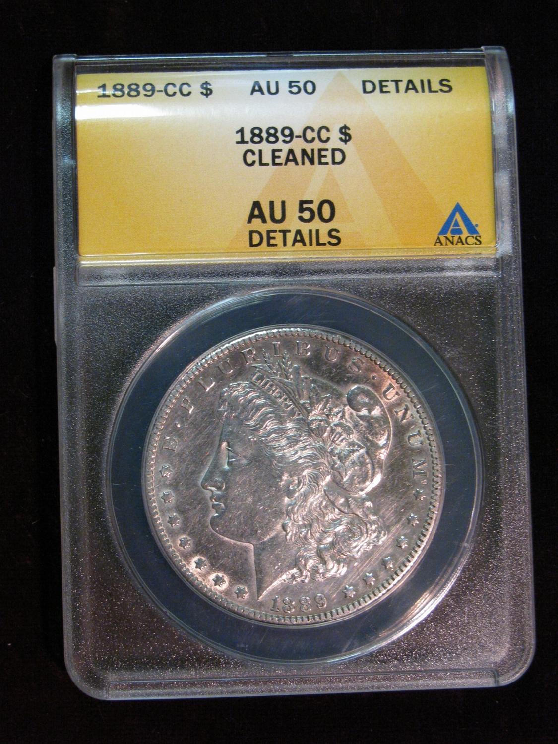 1207. 1889CC Morgan Dollar ANACS Certified AU-50 Details Cleaned.