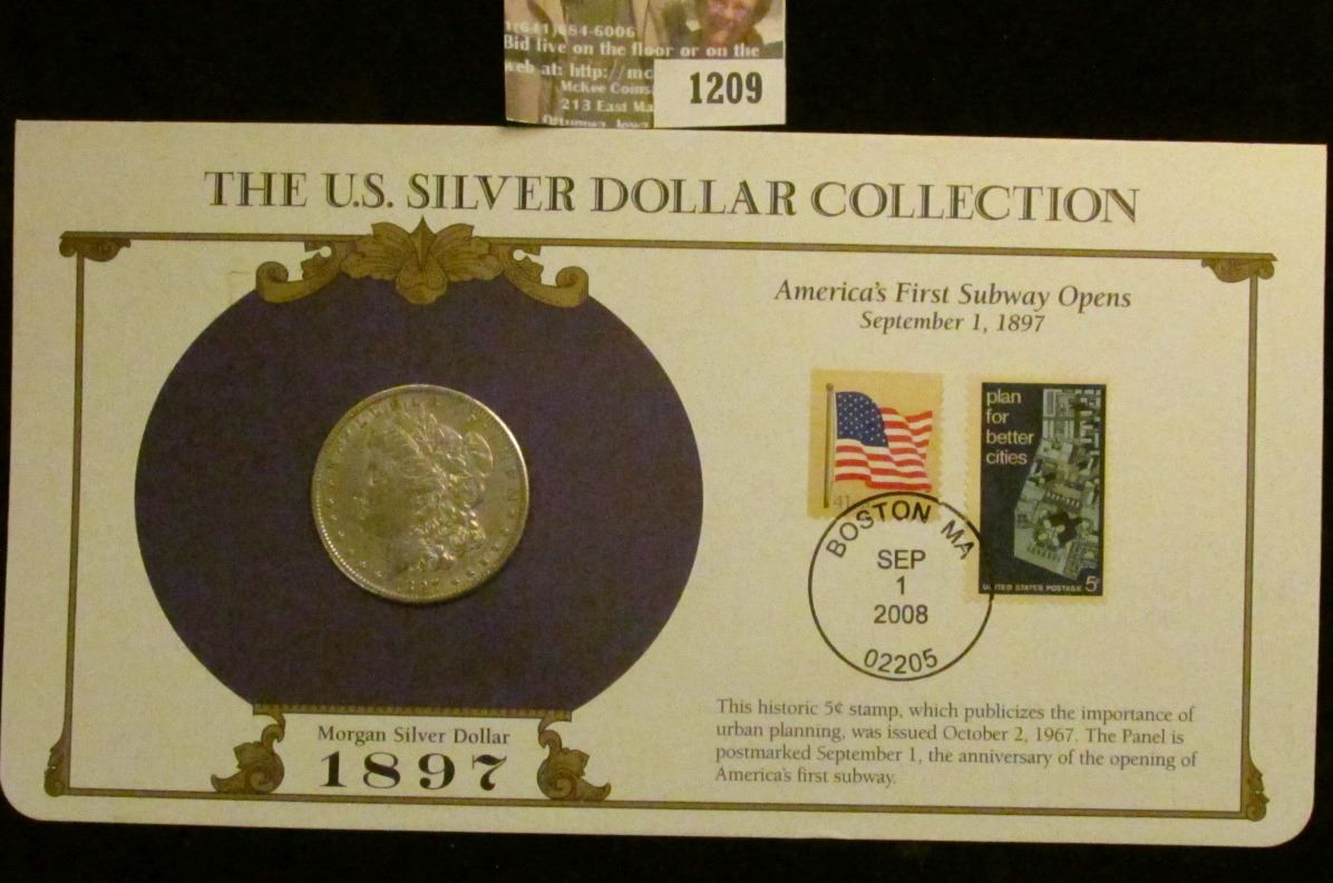 1897 New Orleans Mint Morgan Silver Dollar in a special protected cover with post marked commemorative cover and stamps.