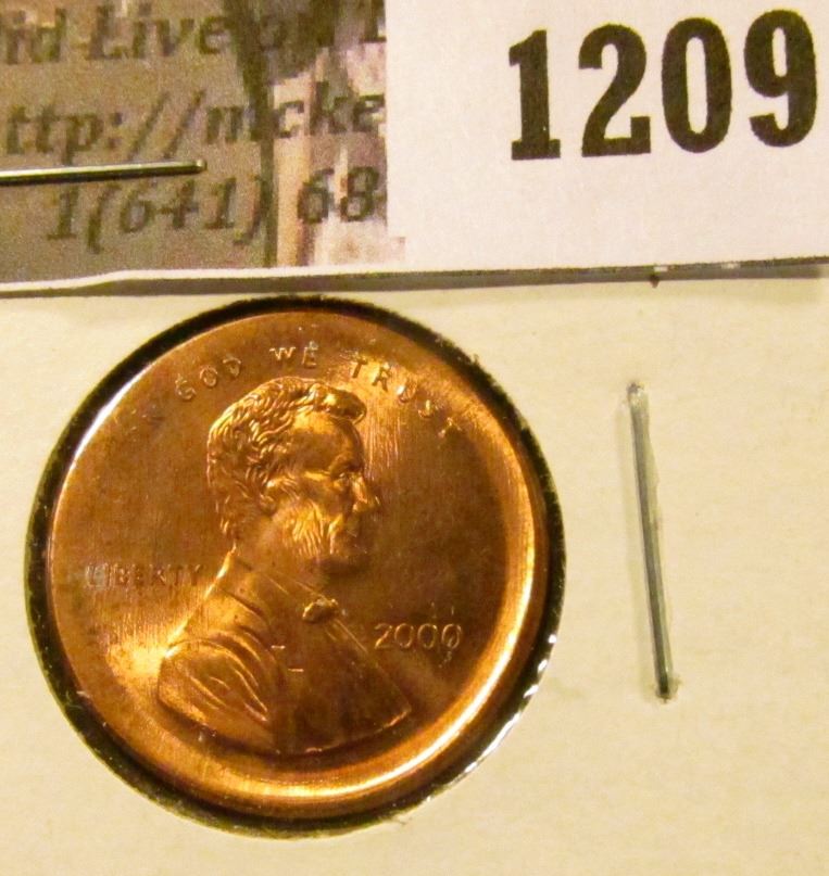 1209 . ERROR - 2000 Lincoln Cent, broad struck, value $5+