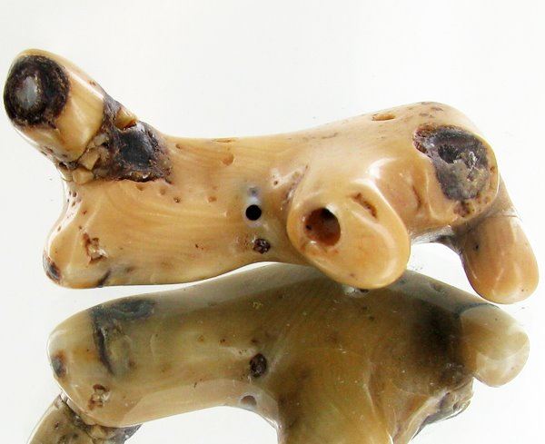 Excellent natural specimen; drilled and ready for pendant; with customary treatment but natural color