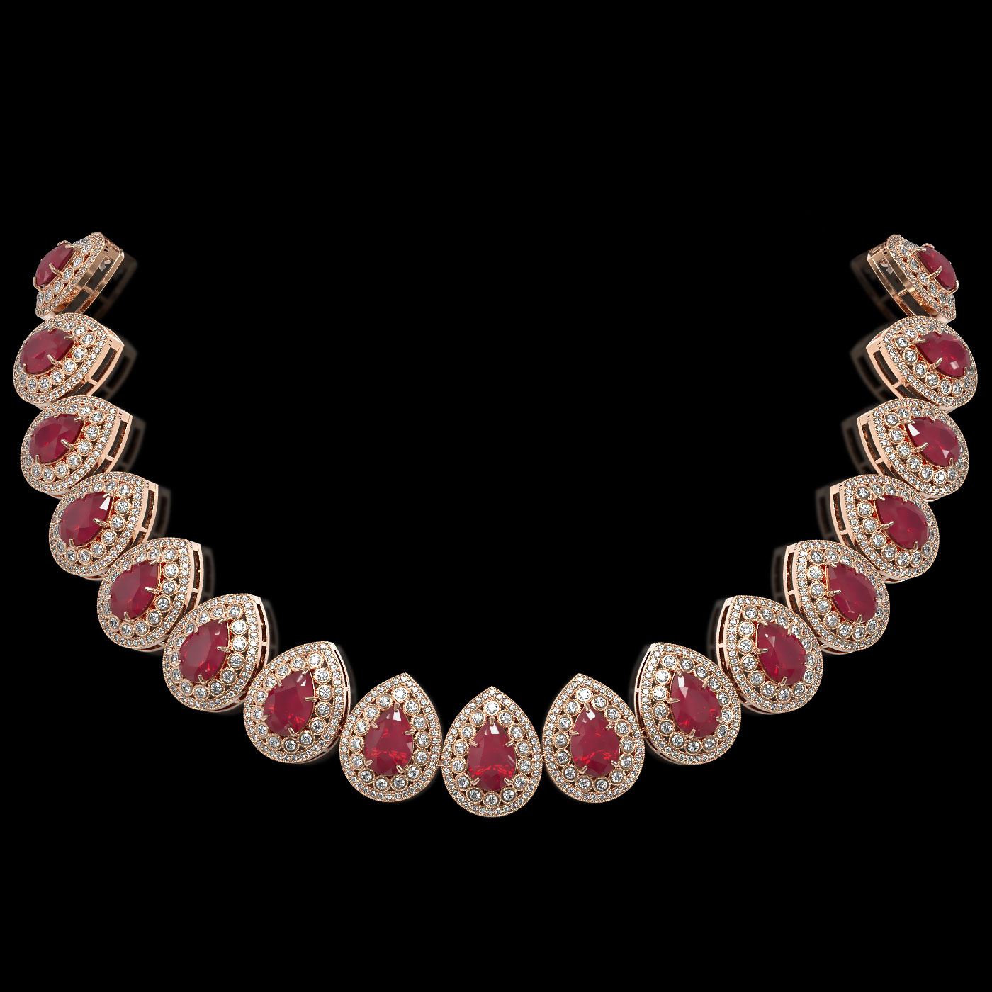 REF-3416R5K - SKU: 43230 ---- 121.42 ctw Certified Ruby & Diamond Victorian Necklace 14K Rose Gold