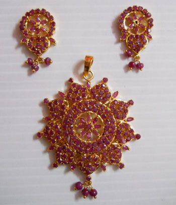 121.80 CTW GOLD PLATED RUBY PENDANT AND EARRING SET STE **|**|** 121.80 CTW GOLD PLATED RUBY PENDANT AND EARRING SET STERLING SILVER ; MSRP: $1225