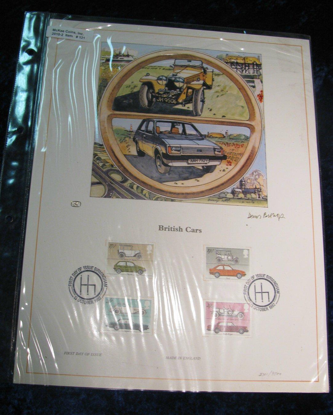 121. British Cars First Day of Issue Cover with stamps and Illustration. Signed and numbered limited edition of 9,500.
