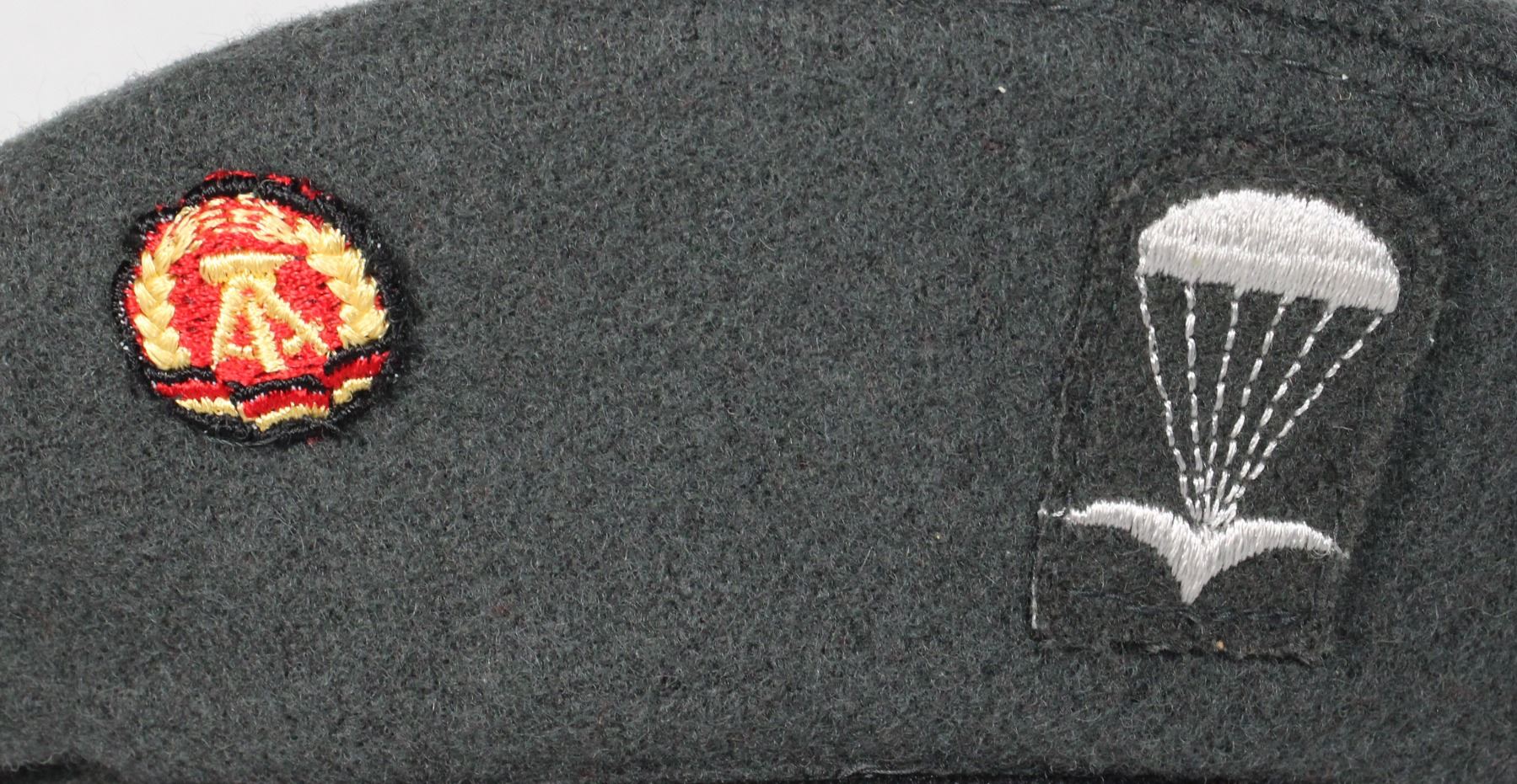 PERSONNEL FALLSCHIRMJÄGER FALLSCHIRMJAGER WITH INSIGNIA PARATROOPER AIRBORNE COLD WAR ERA ST MILITARY GDR DDR EAST GERMAN DEMOCRATIC REPUBLIC GERMANY COMMUNIST SOCIALIST DDR USSR CCCP SOVIET UNION MILITARY HEADGEAR 1900'S 20TH CENTURY DEUTSCHLAND