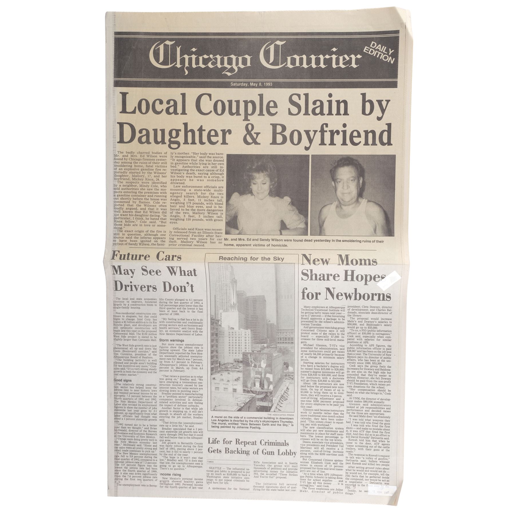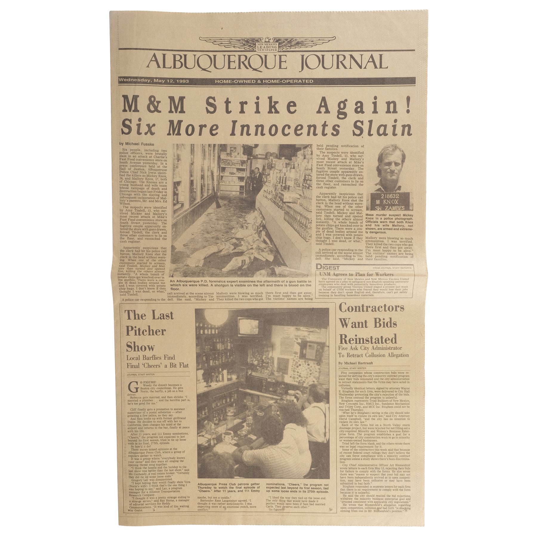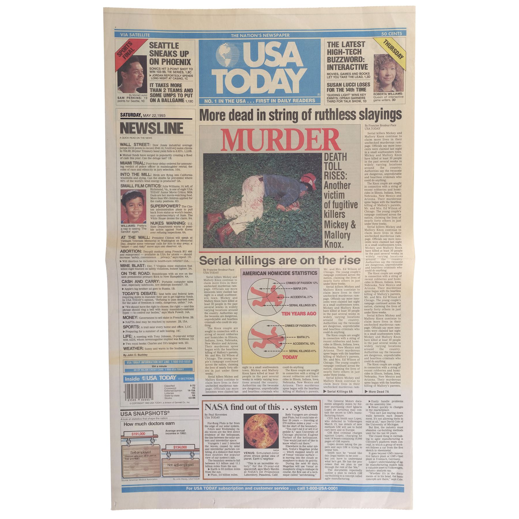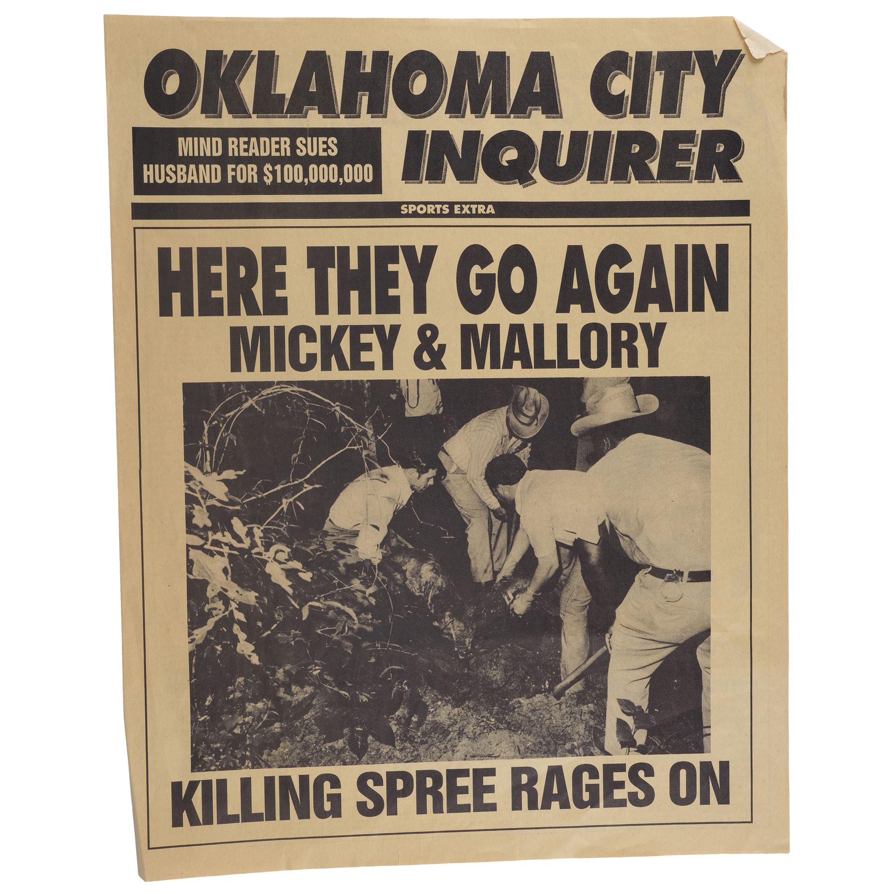NATURAL BORN KILLERS (1994) - Set of Six Newspapers - Six newspapers from Oliver Stone's Natural Born Killers. Detective Jack Scagnetti (Tom Sizemore) kept various newspapers that documented Mickey (Woody Harrelson) and Malory Knox's (Juliette Lewis) sightings and murders across the nation in his pursuit to bring them down.