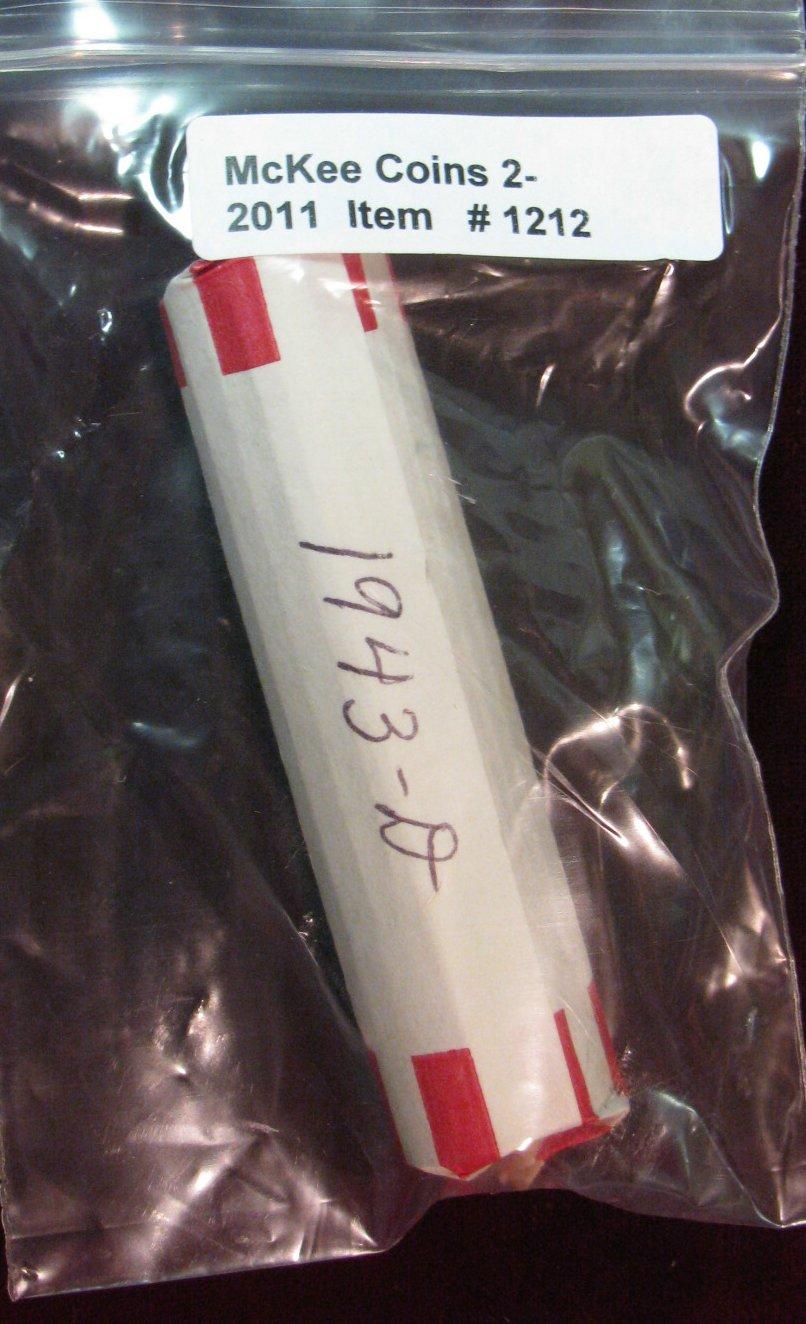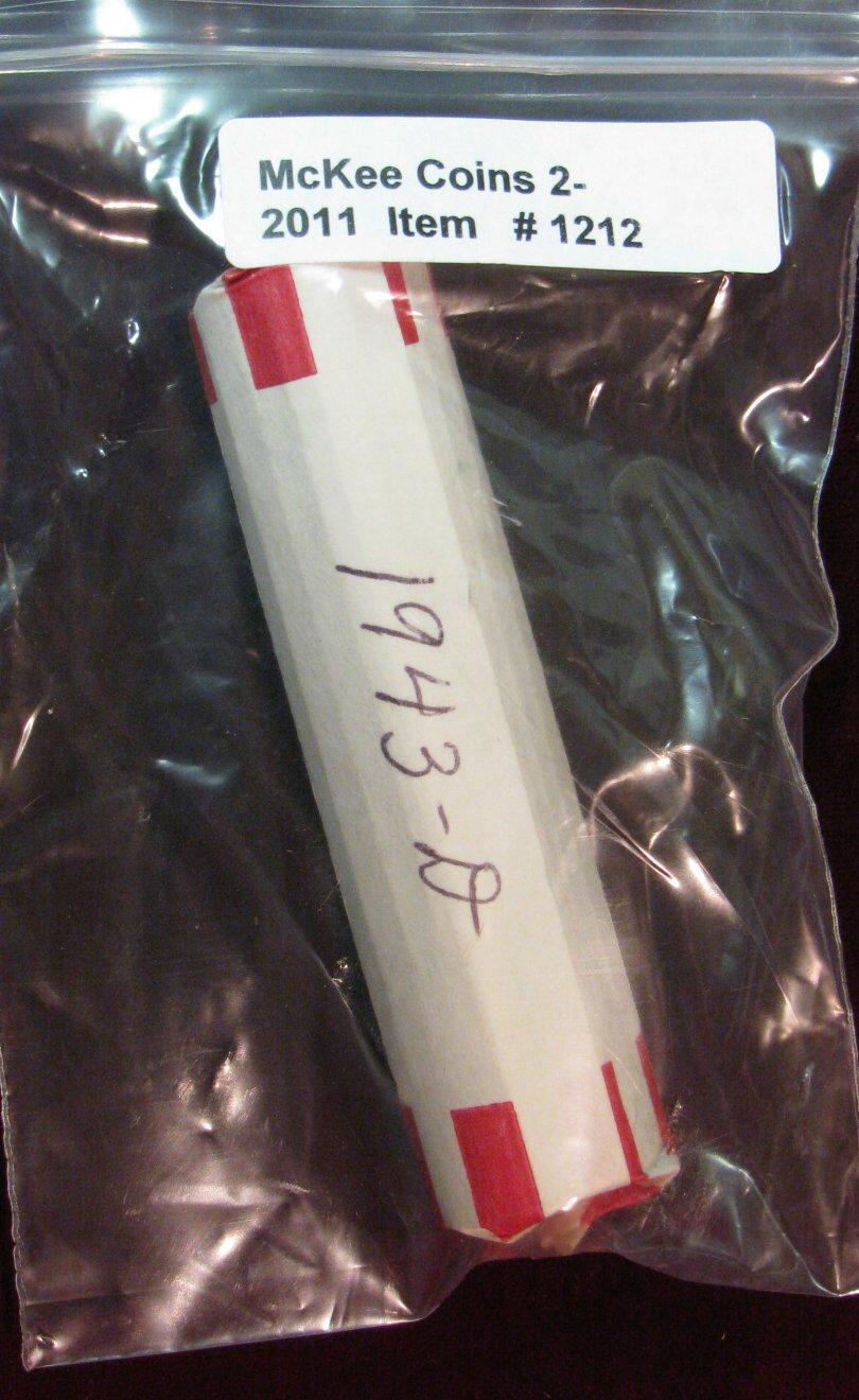1212. 1943D Circulated Lincoln Cent Roll.