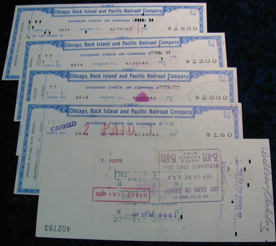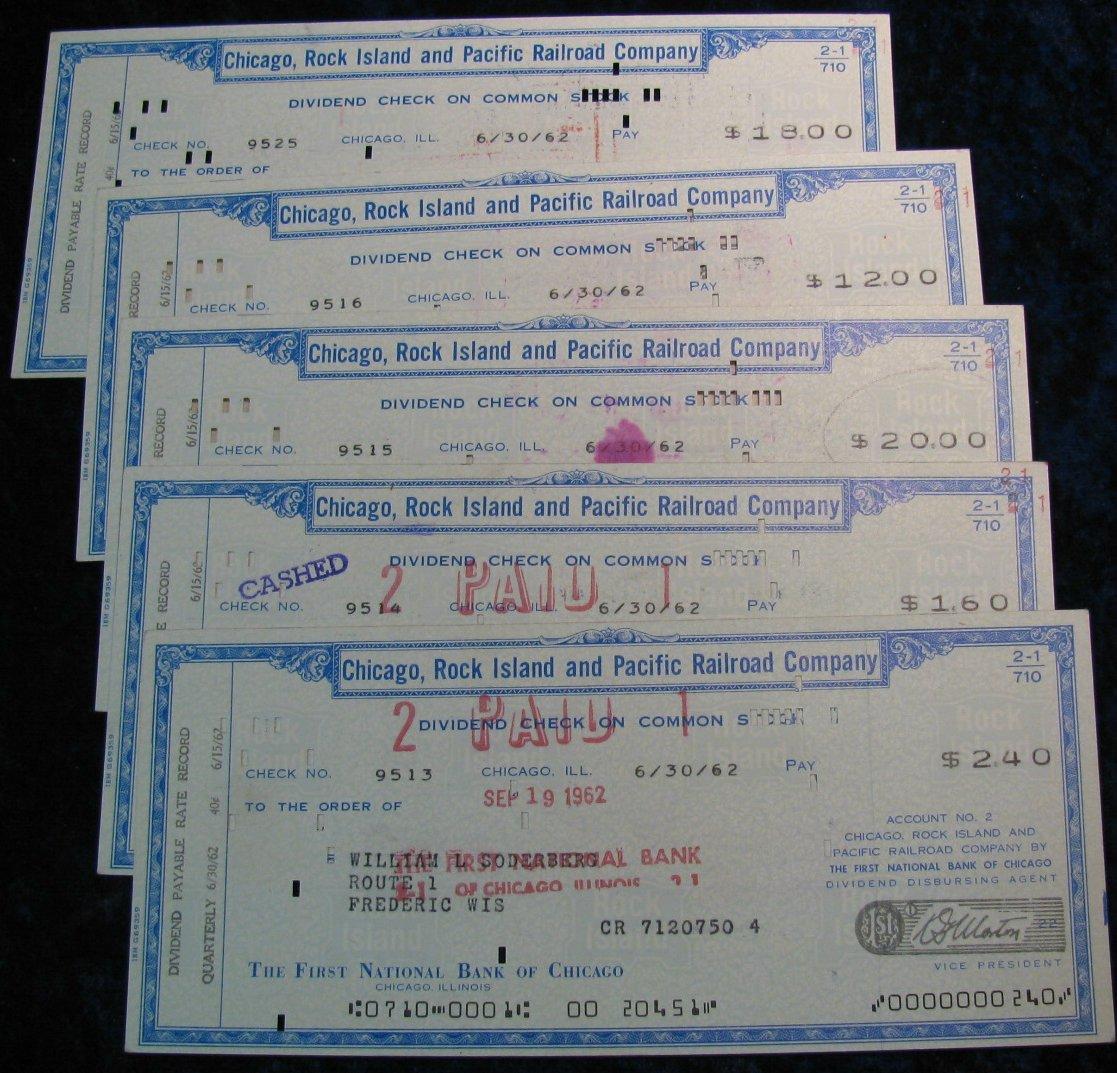 1212. (5) Chicago, Rock Island & Pacific RR. Dividend Checks.