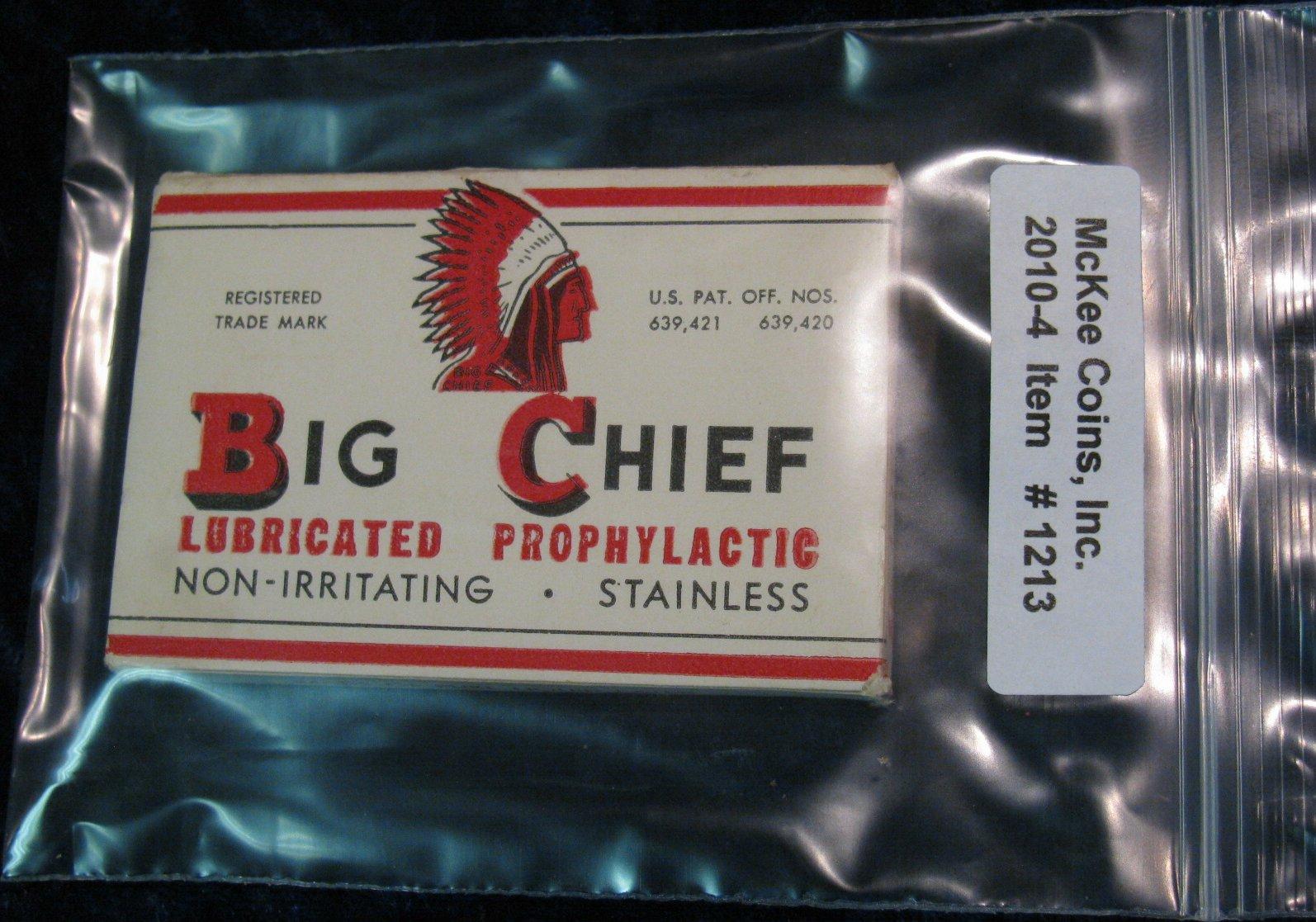 1213. Unopened Box Big Chief Lubricated Prophylactics.