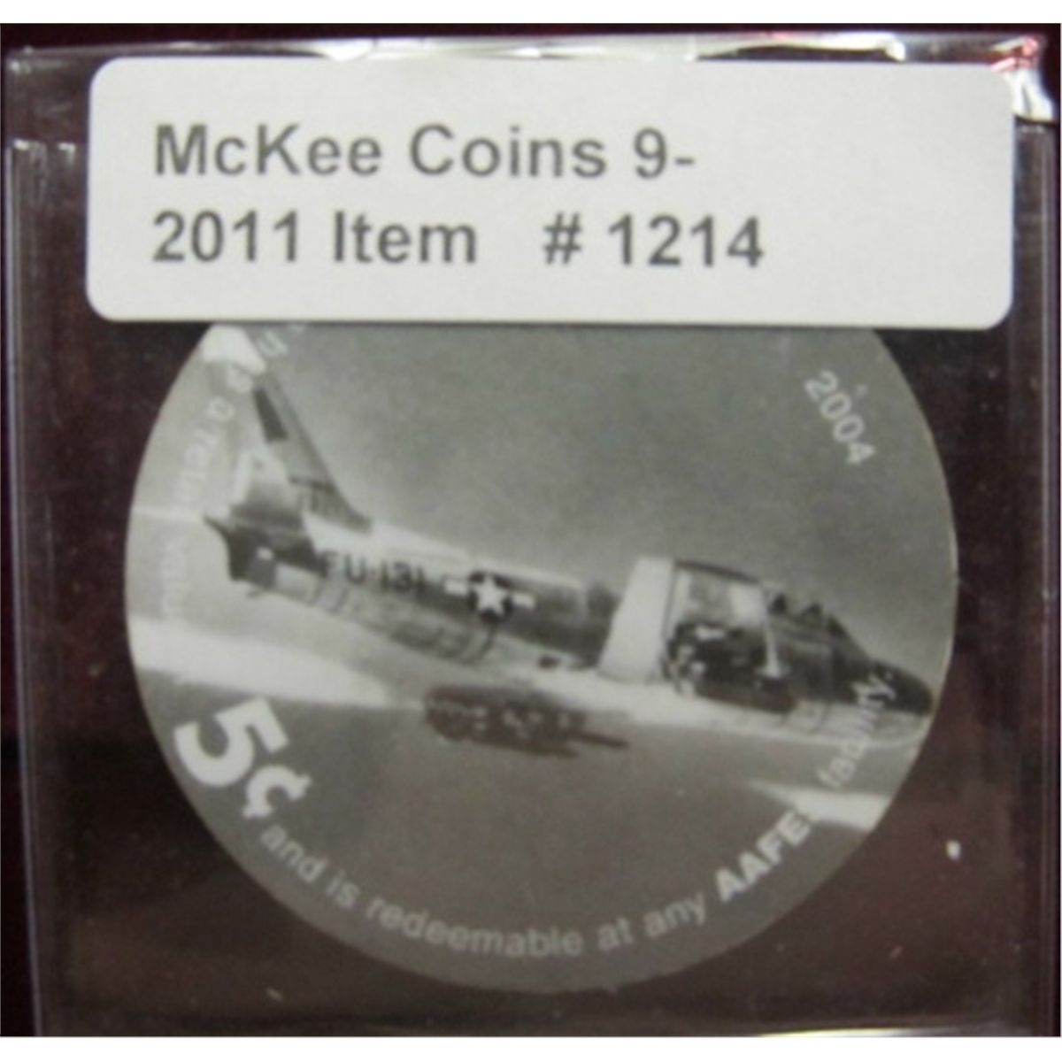 1214. 2004 "AAFES" 5c Plastic token-issued for GI stationed Overseas. B & W photo Fighter plane FU-131 on tail.