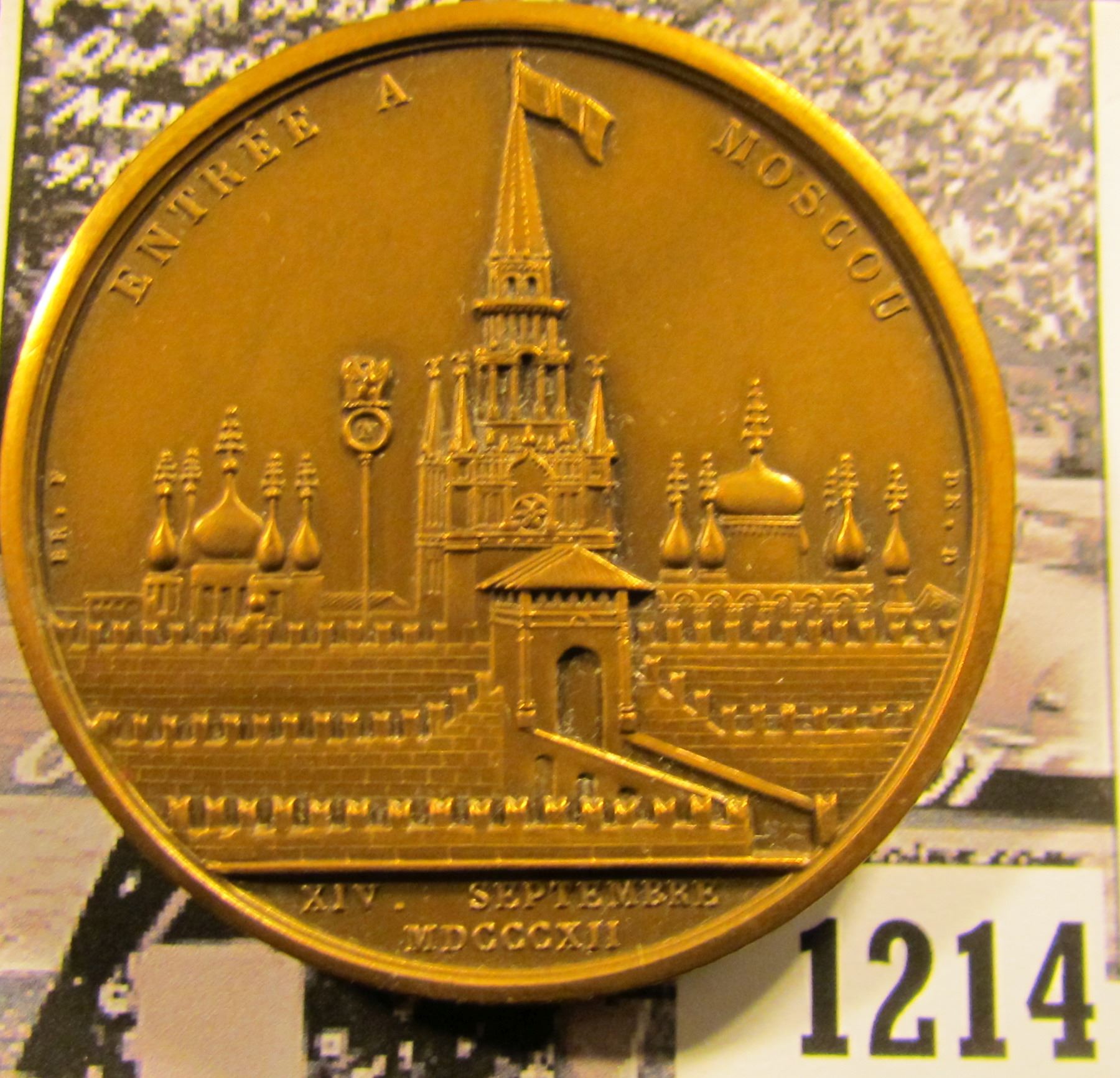 1214 . French Medal With Napolean Bonaparte On The Front. On The Reverse It Says “Entered Moscow September 14th 1812”