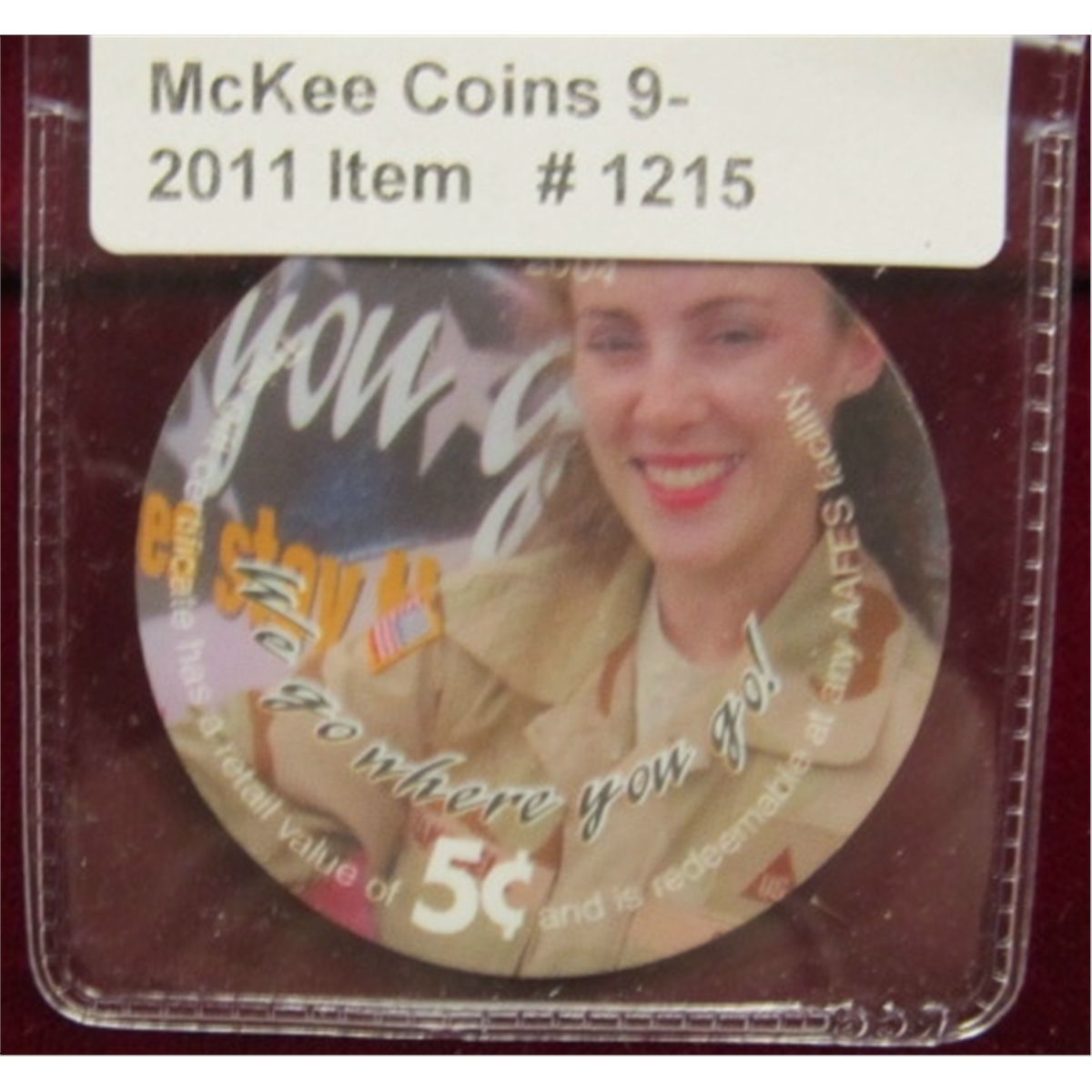1215. 2004 "AAFES" 5c Plastic token-issued for GI stationed Overseas. Color photo of Female GI.