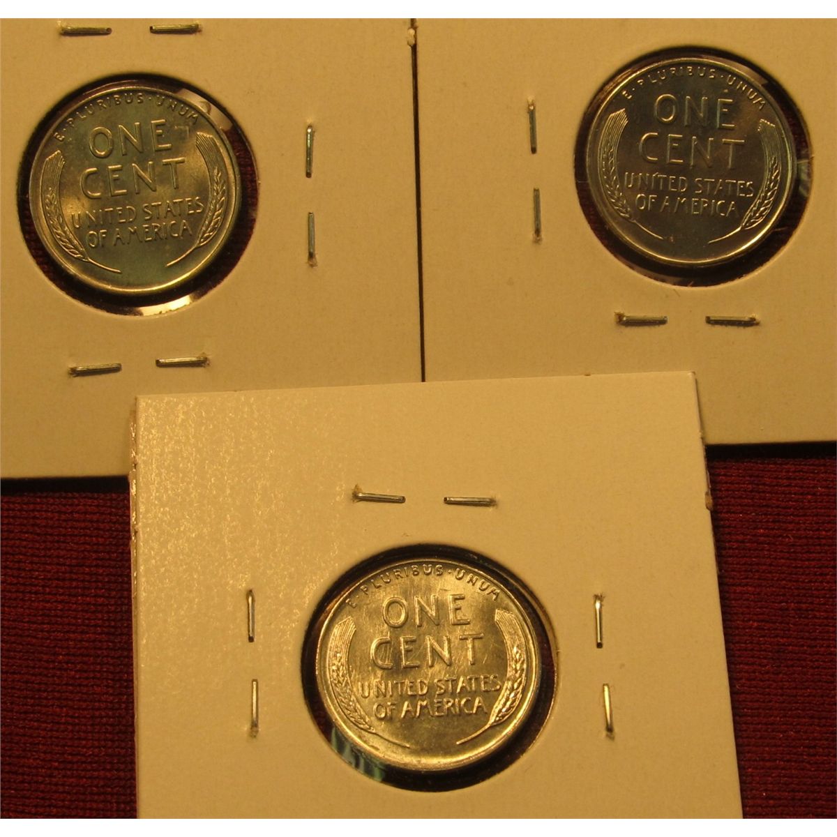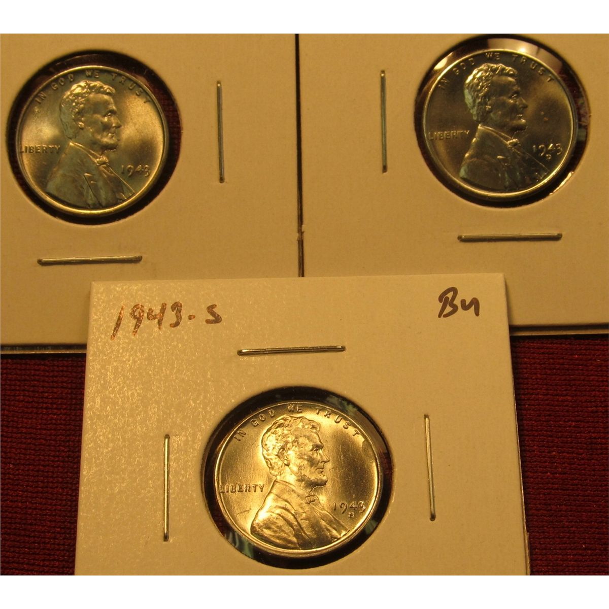 1215. 3 Lincoln Cents – 1943 PDS, all BU , part of set break