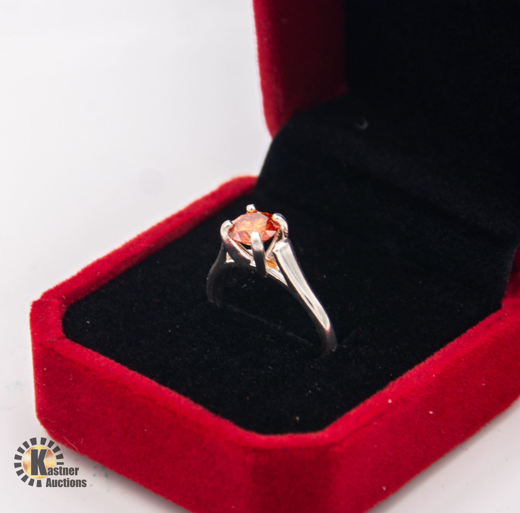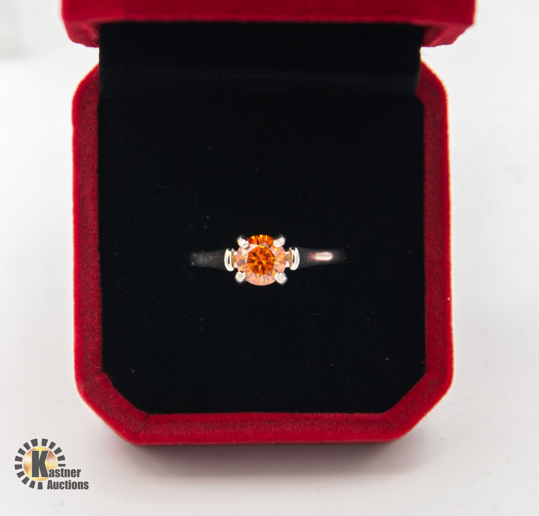 ROUND BRILLIANT CUT MOISSANITE STONE VVS ORANGE IN COLOR SET IN 925 SILVER RING SIZE 8