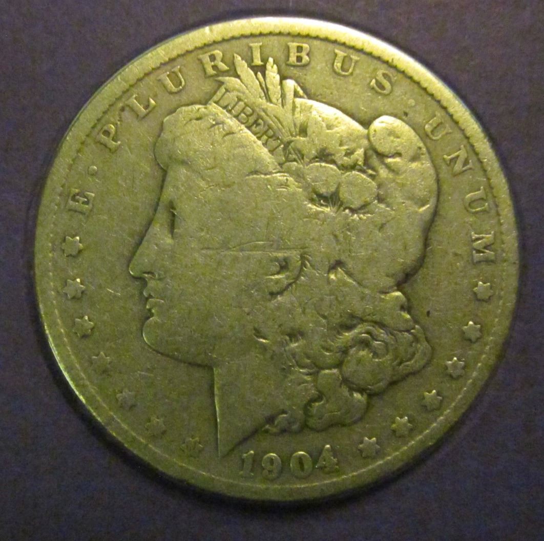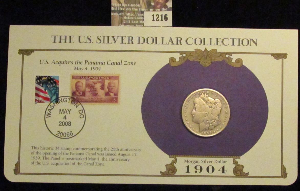 1904 Philadelphia Mint Morgan Silver Dollar in a special protected cover with post marked commemorative cover and stamps.