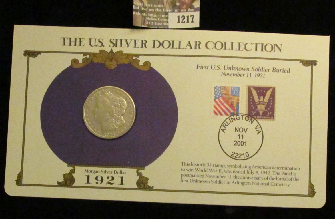 1921 San Francisco Mint Morgan Silver Dollar in a special protected cover with post marked commemorative cover and stamps.