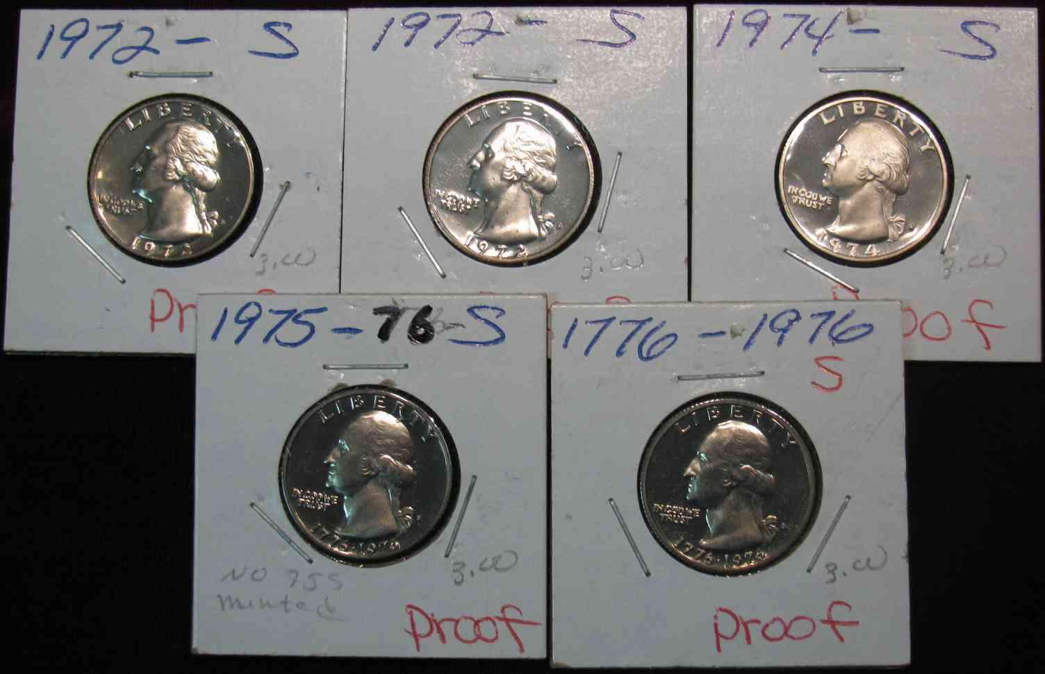 1217. (2) 1972S, 74S, (2) 76S Washington Quarters. Proof.