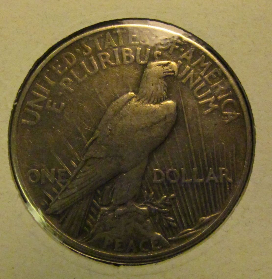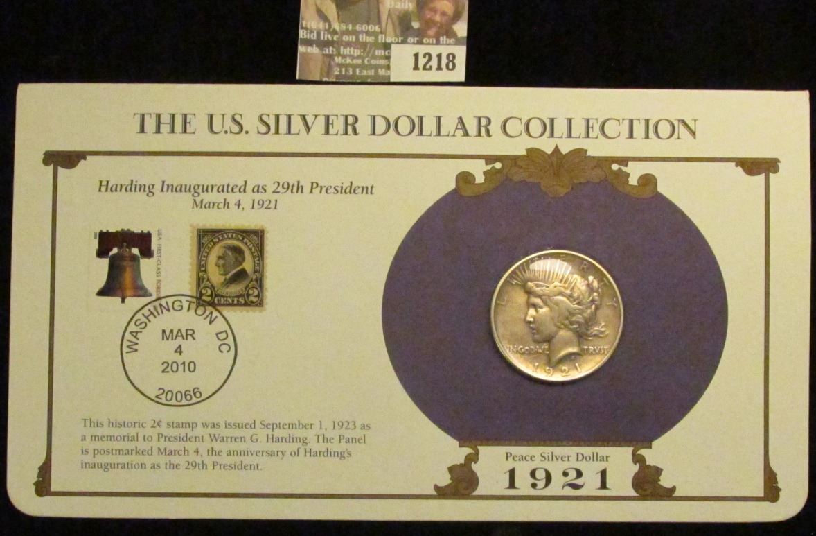 1921 Philadelphia Mint U.S. Peace Silver Dollar, Fine, in a special protected cover with post marked commemorative cover and stamps. Only minted during the month of December.