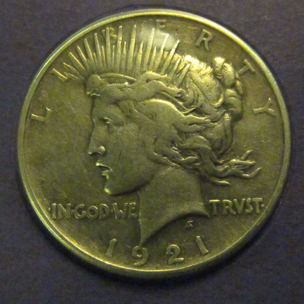 1218 _ 1921 Philadelphia Mint U.S. Peace Silver Dollar, Fine, in a special protected cover with post